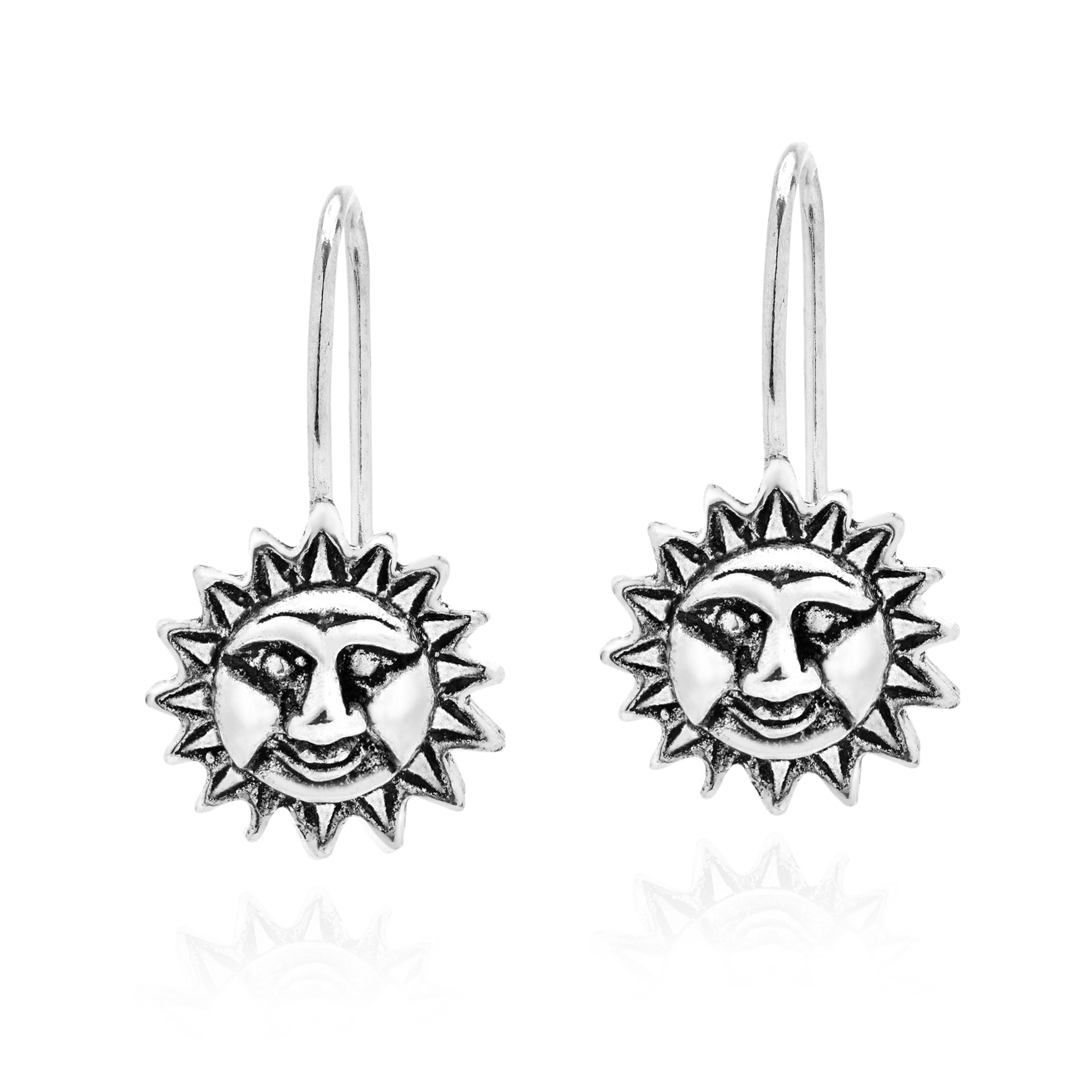 Add a stylish sun accent to any outfit with these amazing dangle earrings from Thai artisan Watsud. For this piece, sterling silver is crafted into a trendy sun and face design and then attached to sterling silver hooks. The sun is known to symbolize life and energy and is located at the center of our solar system. Without the sun, life would not exist on Earth. The perfect combination of fun and fashion, these celestial earrings are sure to look amazing with whatever you are wearing.