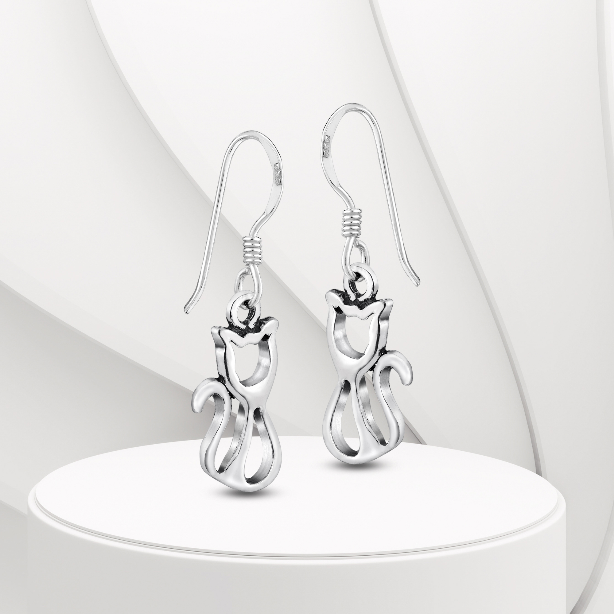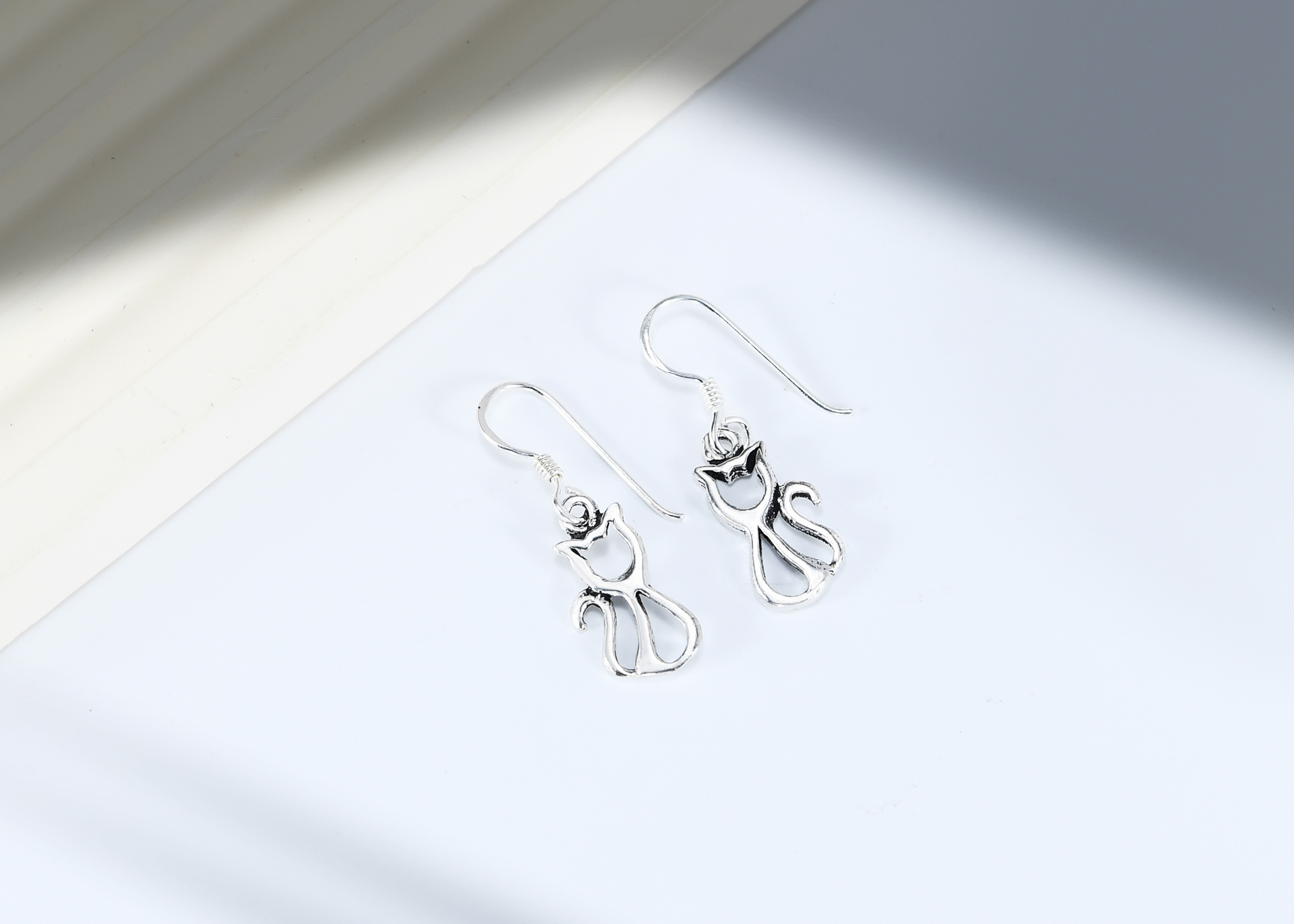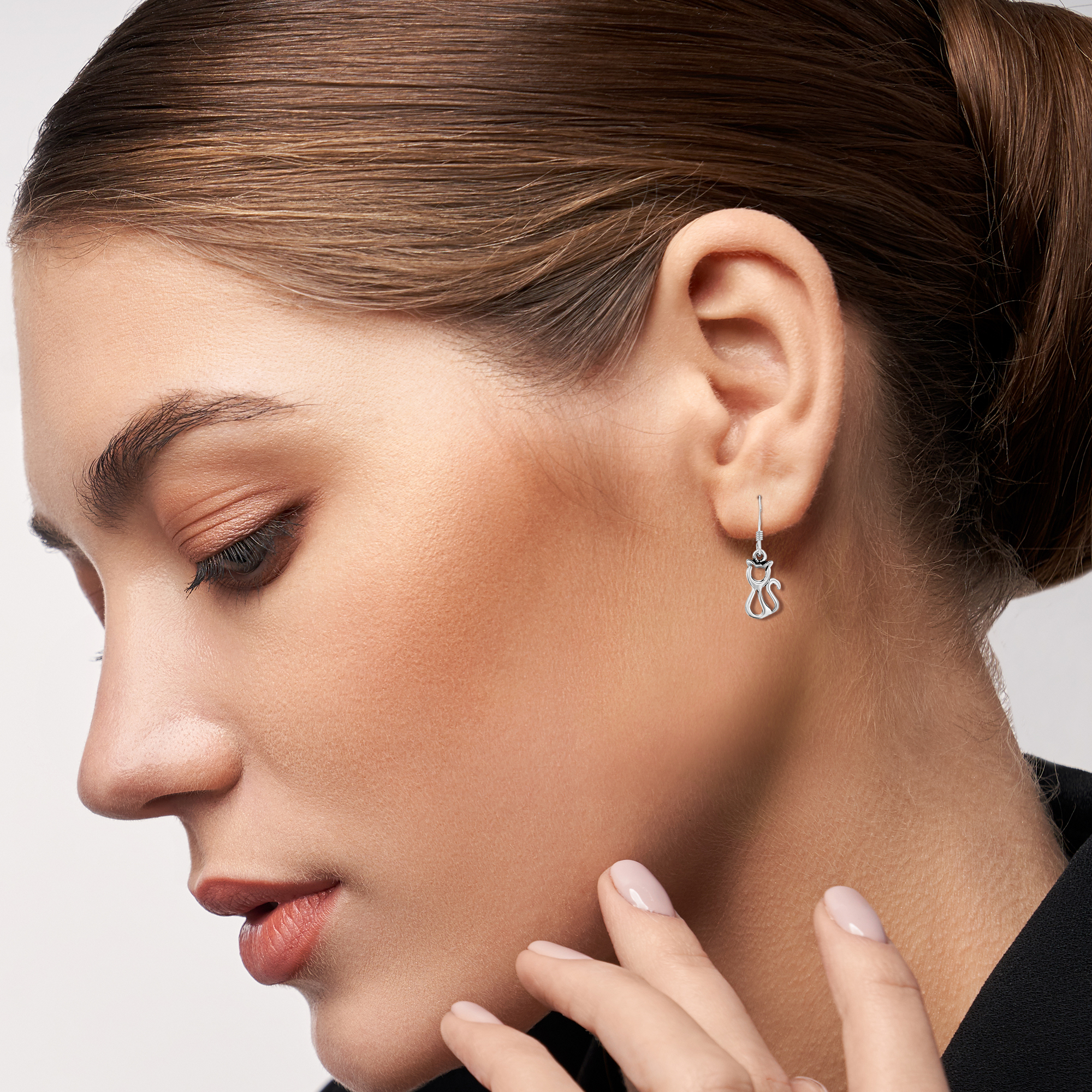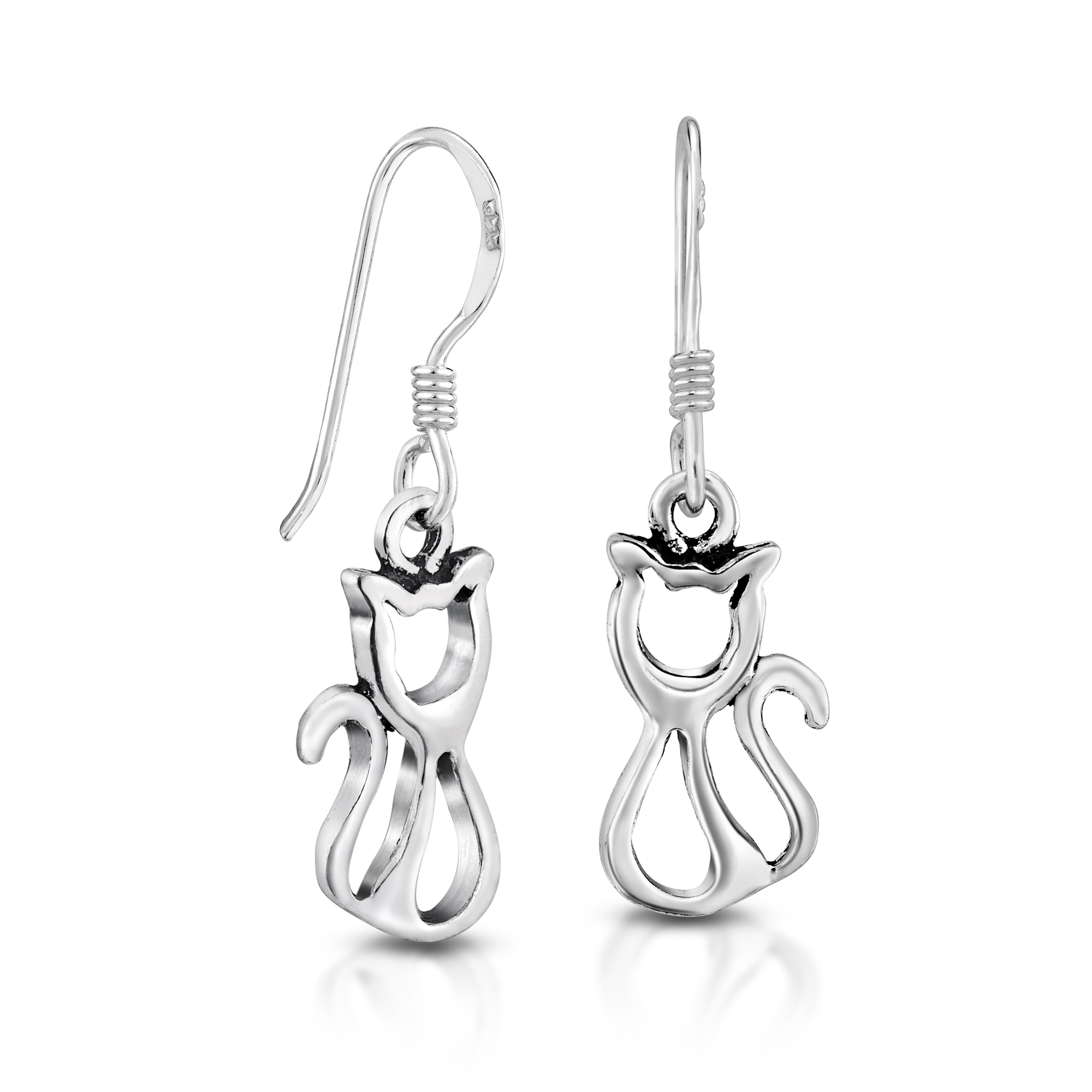 The perfect fashion accessory for any cat lover, these cute earrings feature an adorable cat outline crafted from fine sterling silver. From the workshop of artisan Somchai of Thailand, these dangle earrings swing from sterling silver hooks. Making for a fun, feline-inspired fashion accessory that will look amazing with whatever you are wearing.