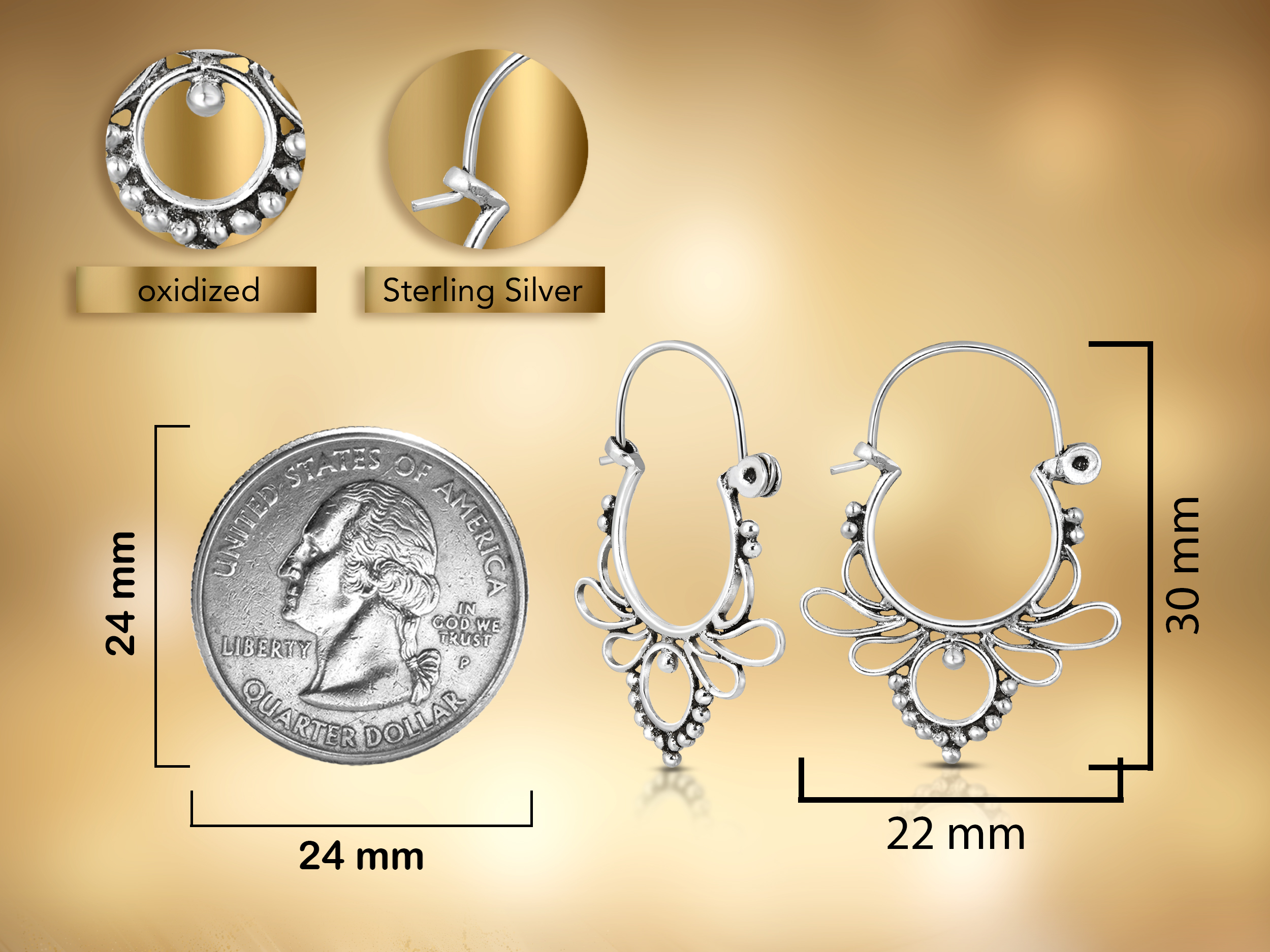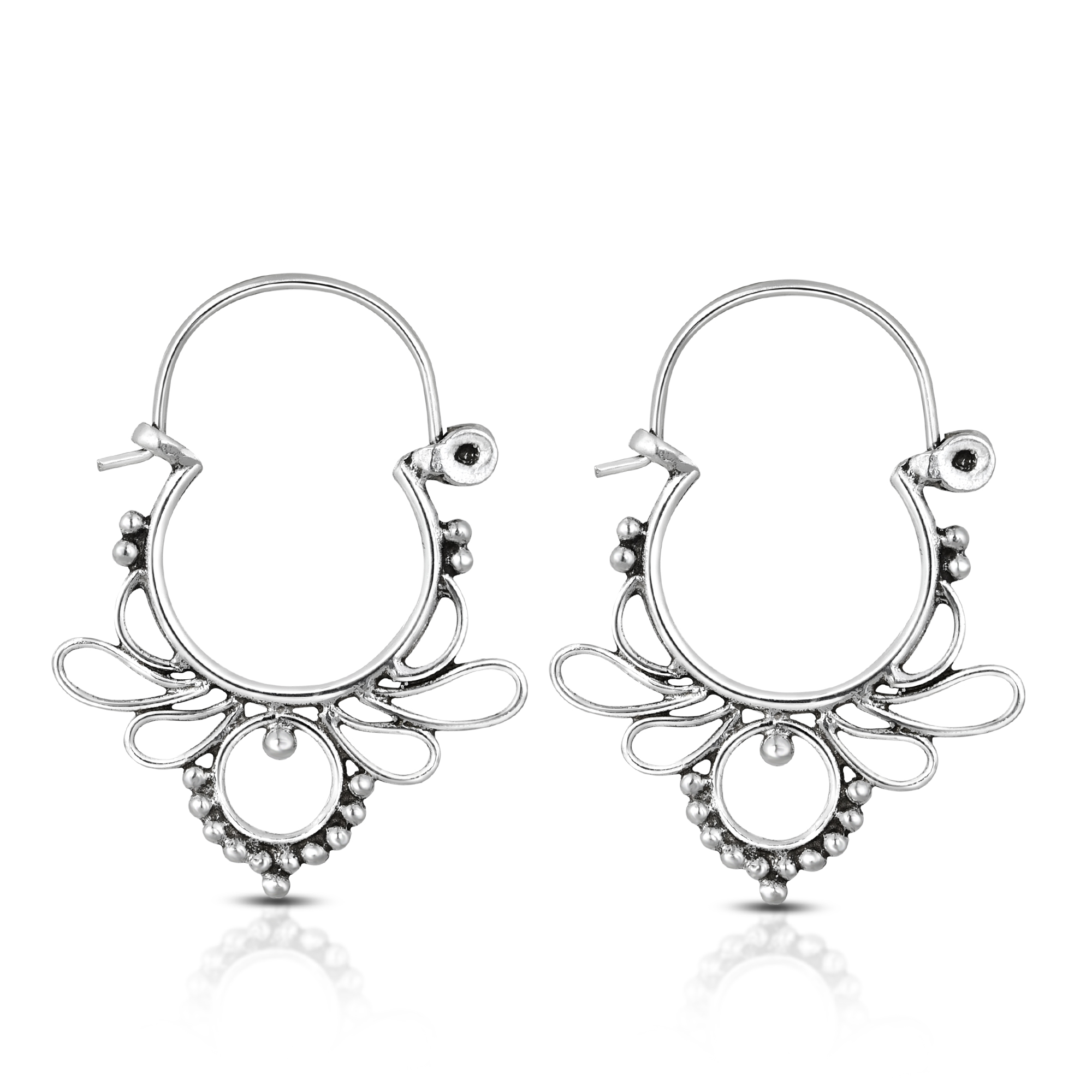 Inspired by the traditional designs of Balinese silversmiths, these stunning earrings feature an elegant swirling design. Beautifully handcrafted by artisan Watsud, these unique earrings are made using fine sterling silver. All finished off with a v-lock clasp, which ensures hassle-free style. A truly unique interpretation of the classic hoop earring, this fashion-forward accessory is a great way to add a touch of tropical elegance to any ensemble.