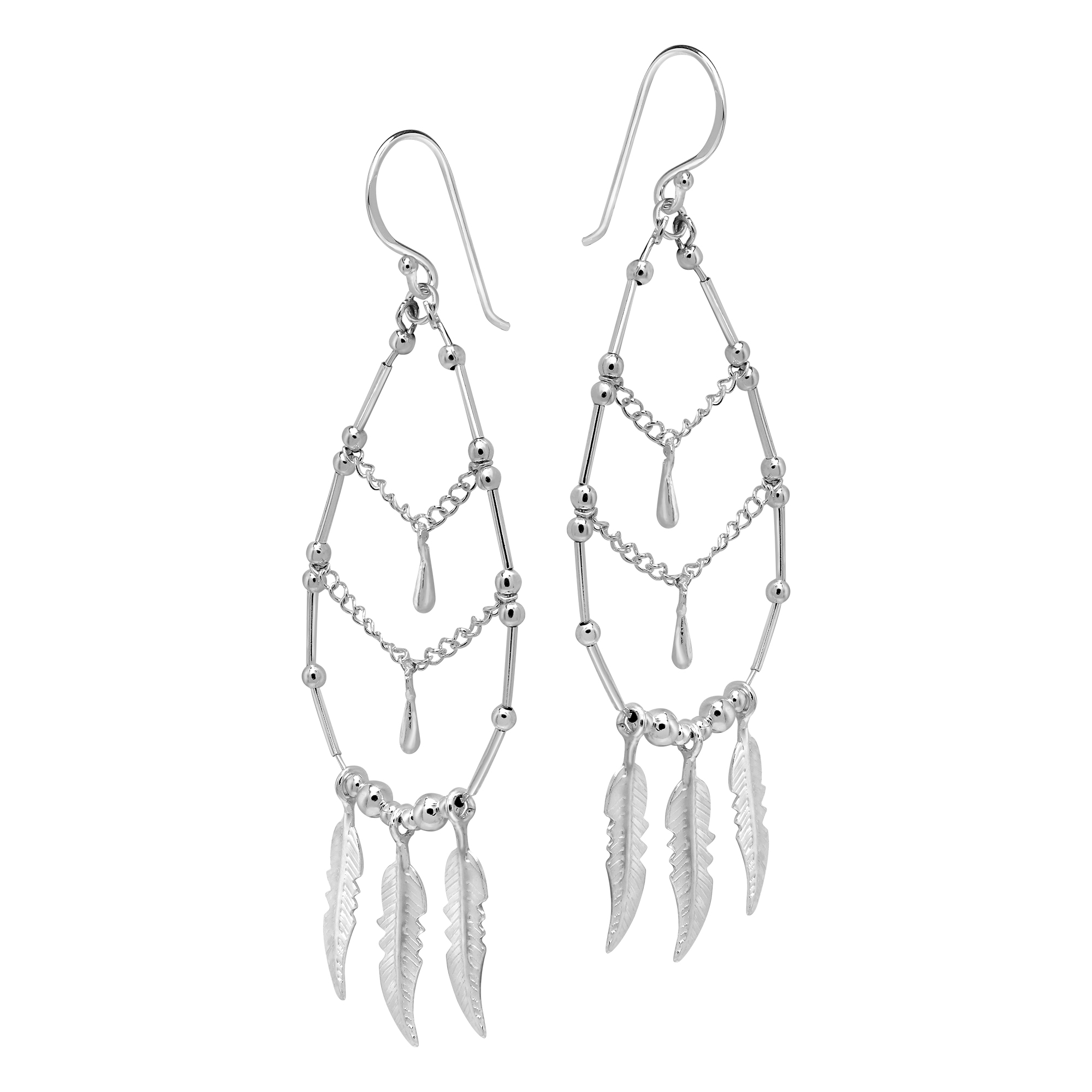 Get noticed and make a dramatic fashion statement with these amazing earrings from artisan Katsaya of Thailand. For this design, sterling silver is formed into a pair of teardrop shaped dangle earrings. Beautiful sterling silver feathers hang from the bottom, adding both style and movement. Delicate chain accents give these earrings a unique touch. All coming together to make an on-point pair of earrings that will make heads turn. Finished on sterling silver hooks, these dangle earrings will add a trendy Coachella-vibe to whatever you are wearing.