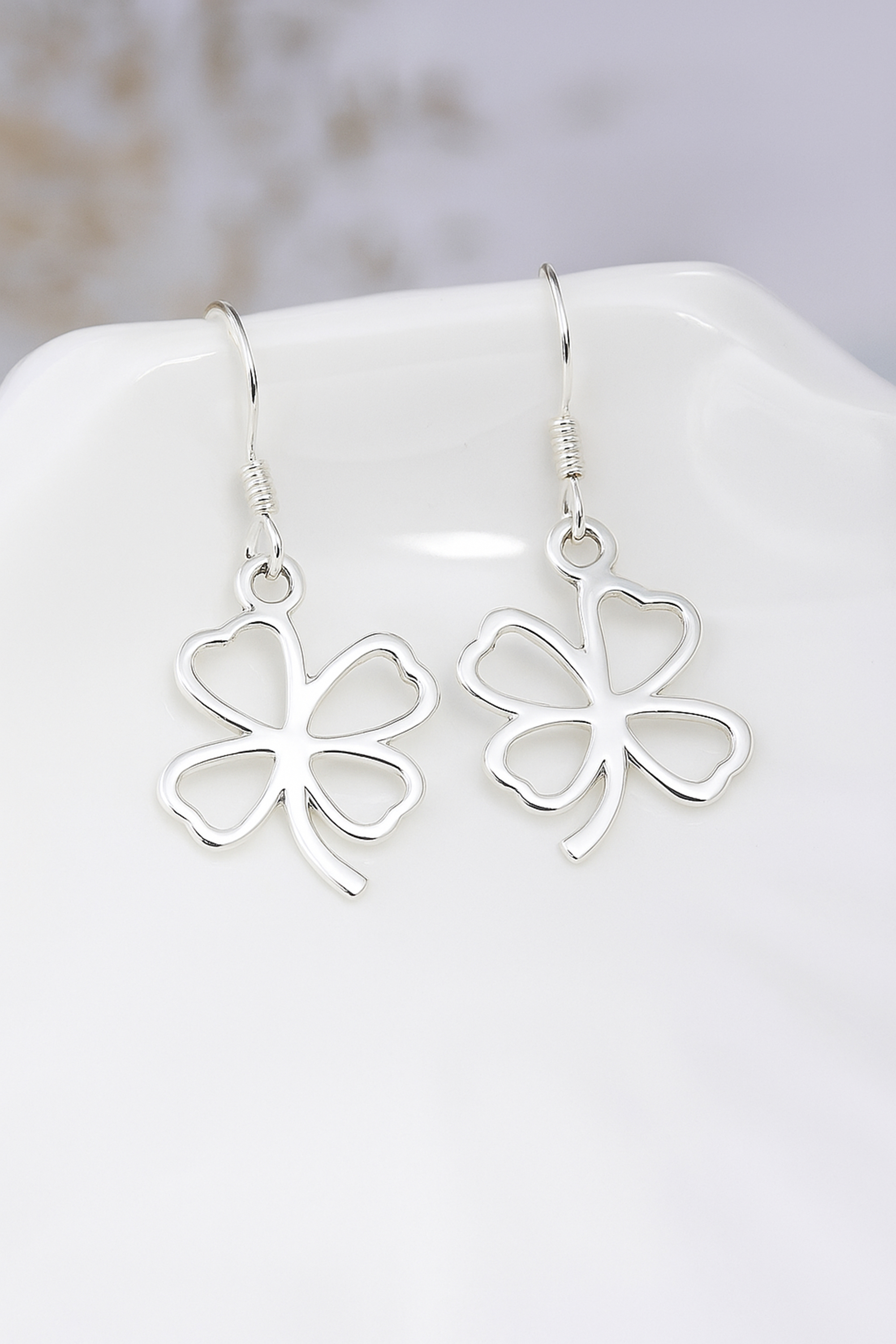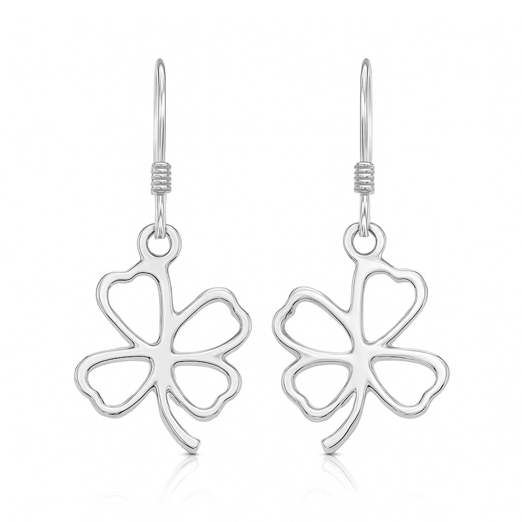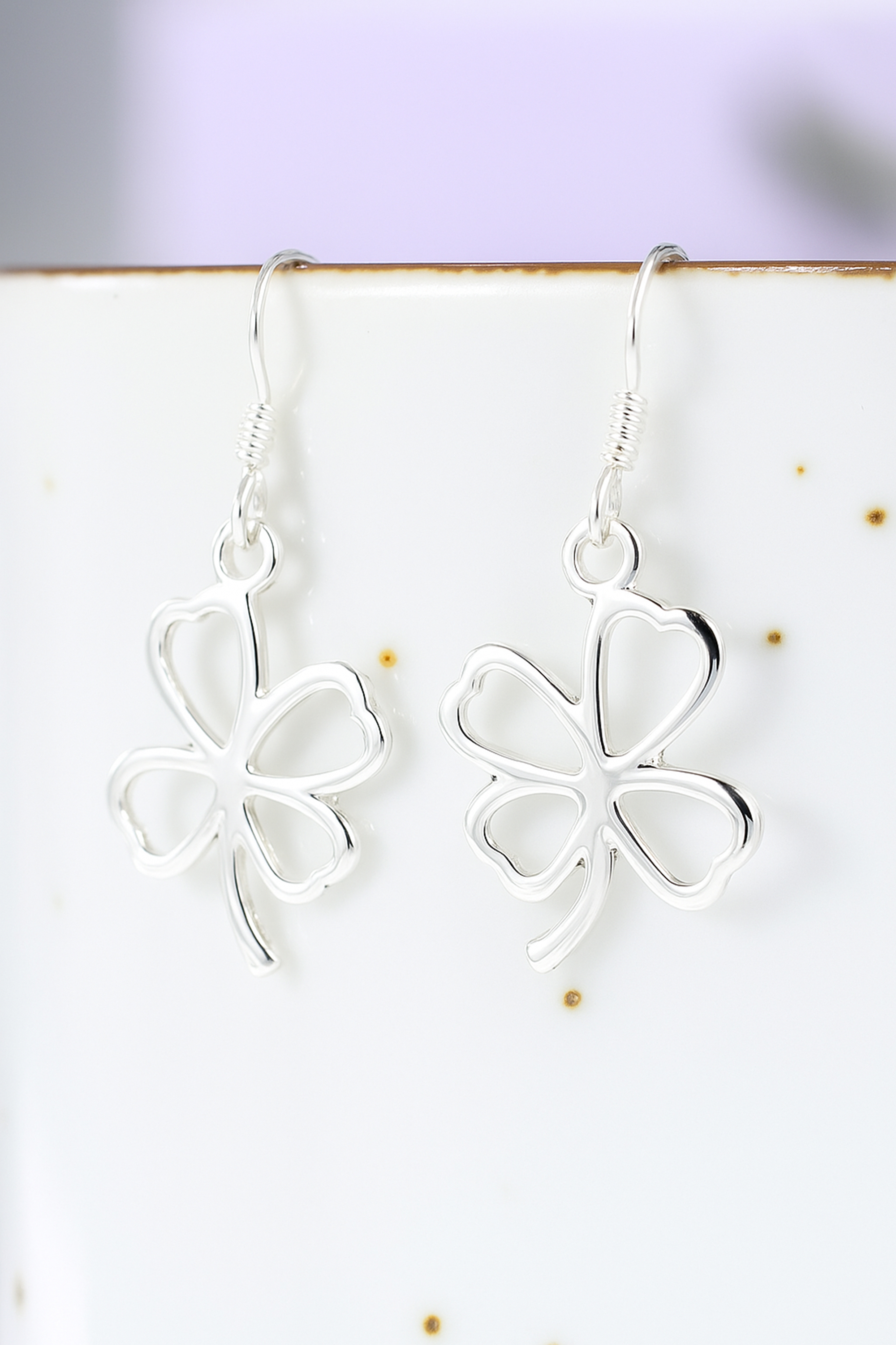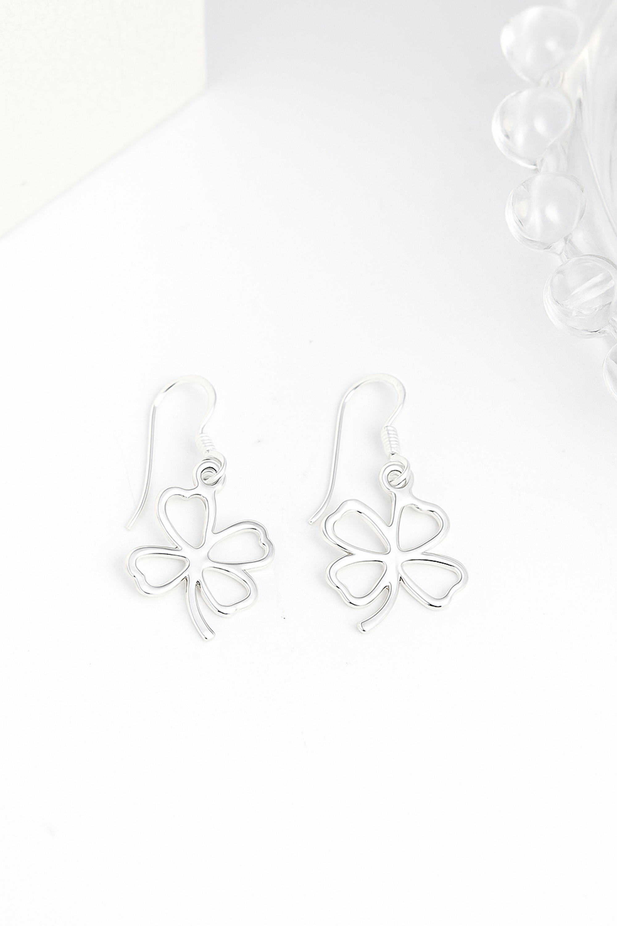 Add a touch of style and luck to any ensemble with these four-leaf clover dangle earrings from Thai artisan Watsud. This design features a simple yet elegant outline of a four-leaf clover that is made using fine sterling silver. These stylish accessories swing from sterling silver hooks and are sure to look amazing hanging from your ears. Both fun and trendy, these handcrafted earrings are sure to look great with whatever you pair with them.