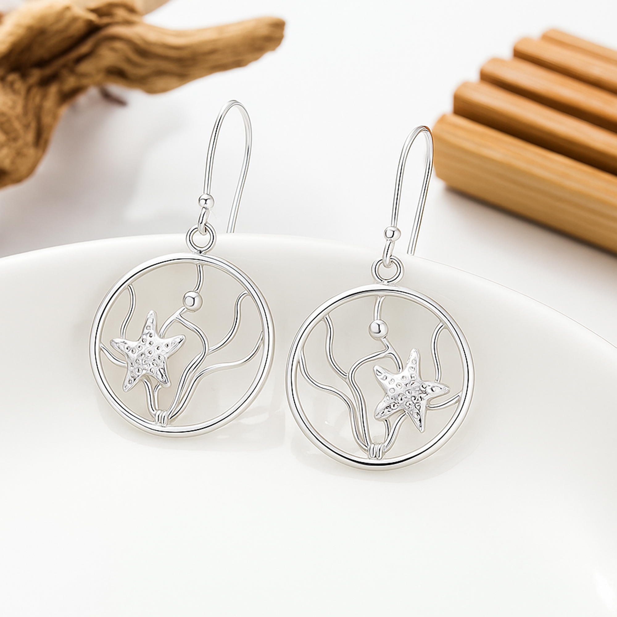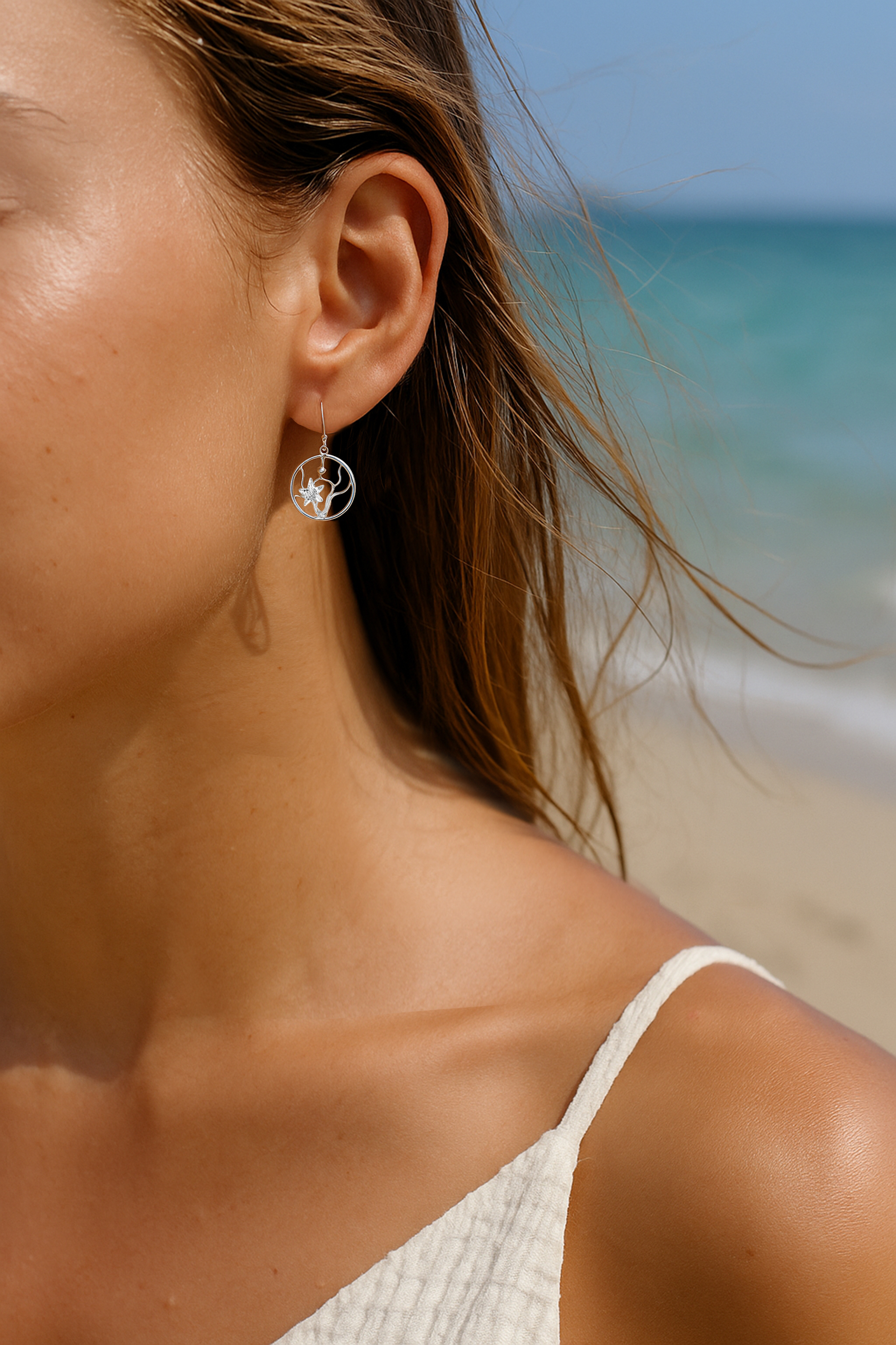 Keep the ocean close to you with these amazing dangle earrings from artisan Pi of Thailand. Crafted using fine sterling silver and inspired by a beautiful day at the beach, these earrings feature a starfish accented with elegant waves. All set within stylish hoops, these versatile dangle earrings will make a wonderful addition to your style line-up.