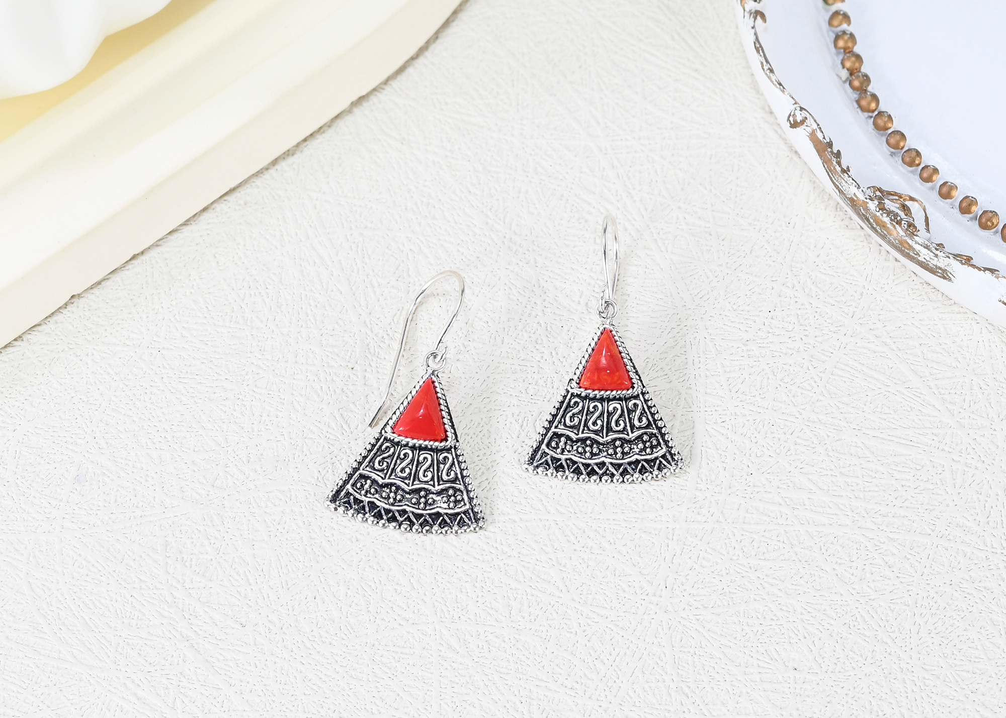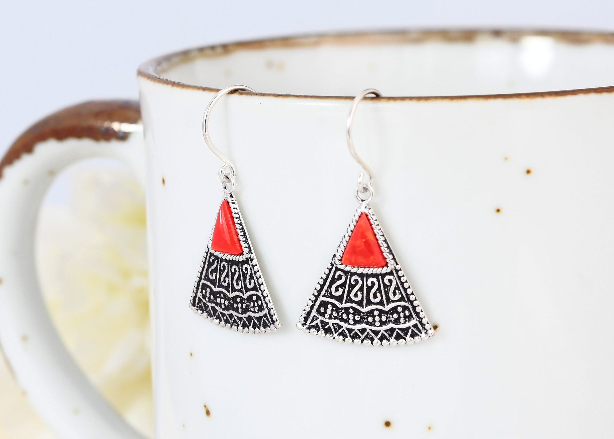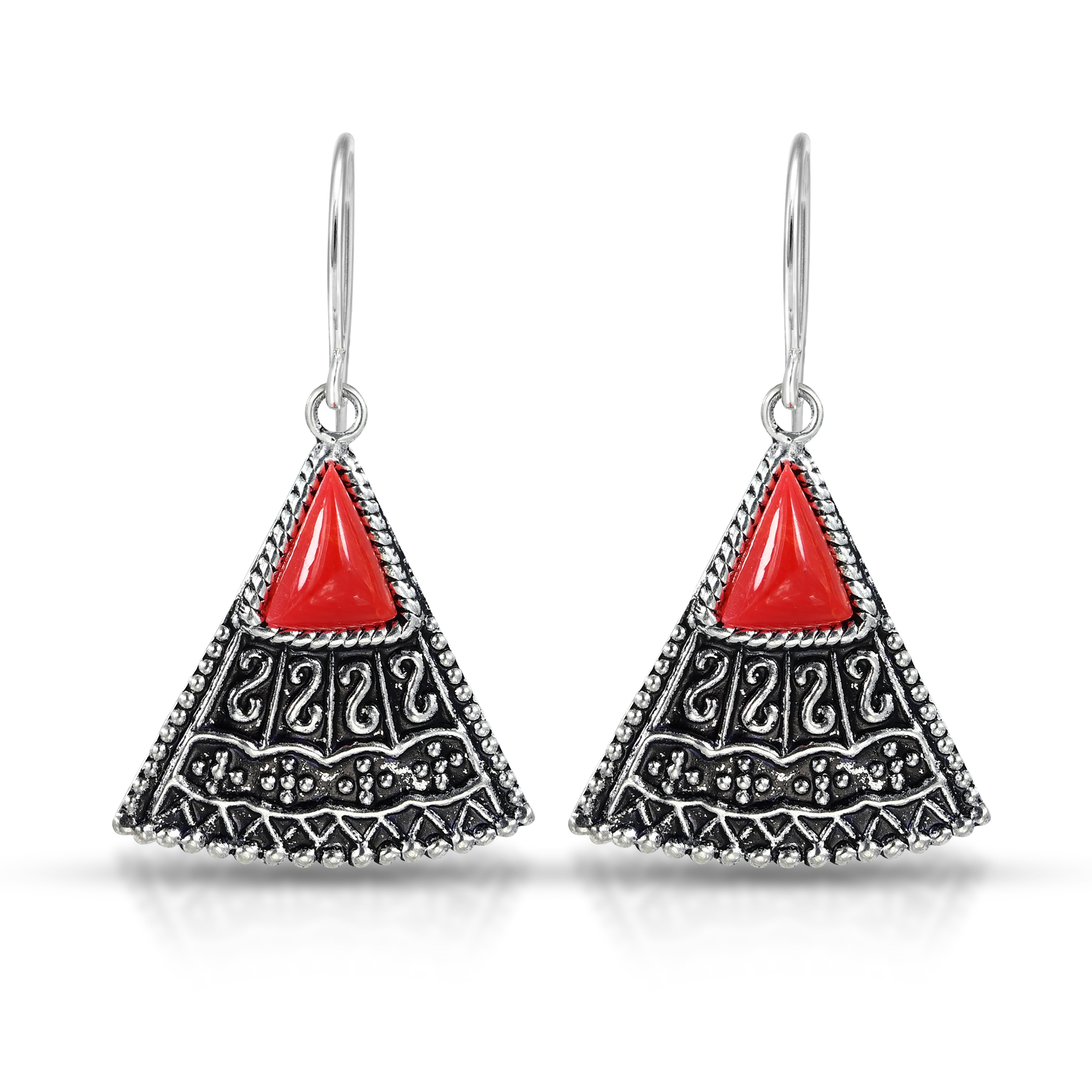 Add a touch of Balinese artistry to your style with these triangle shape earrings. Accented by natural stones, the sterling silver earrings are crafted by hand and adorned with traditional Balinese art.