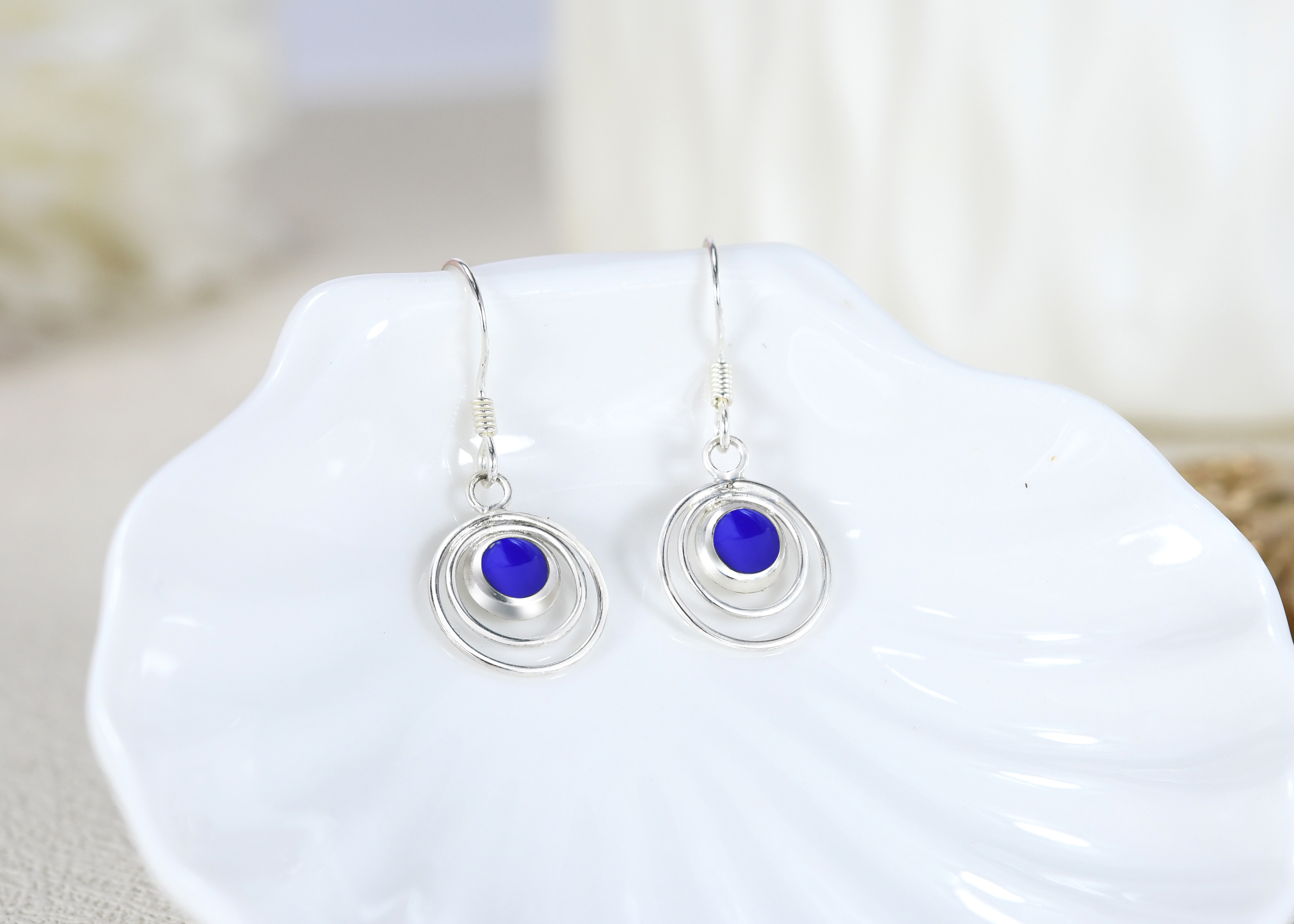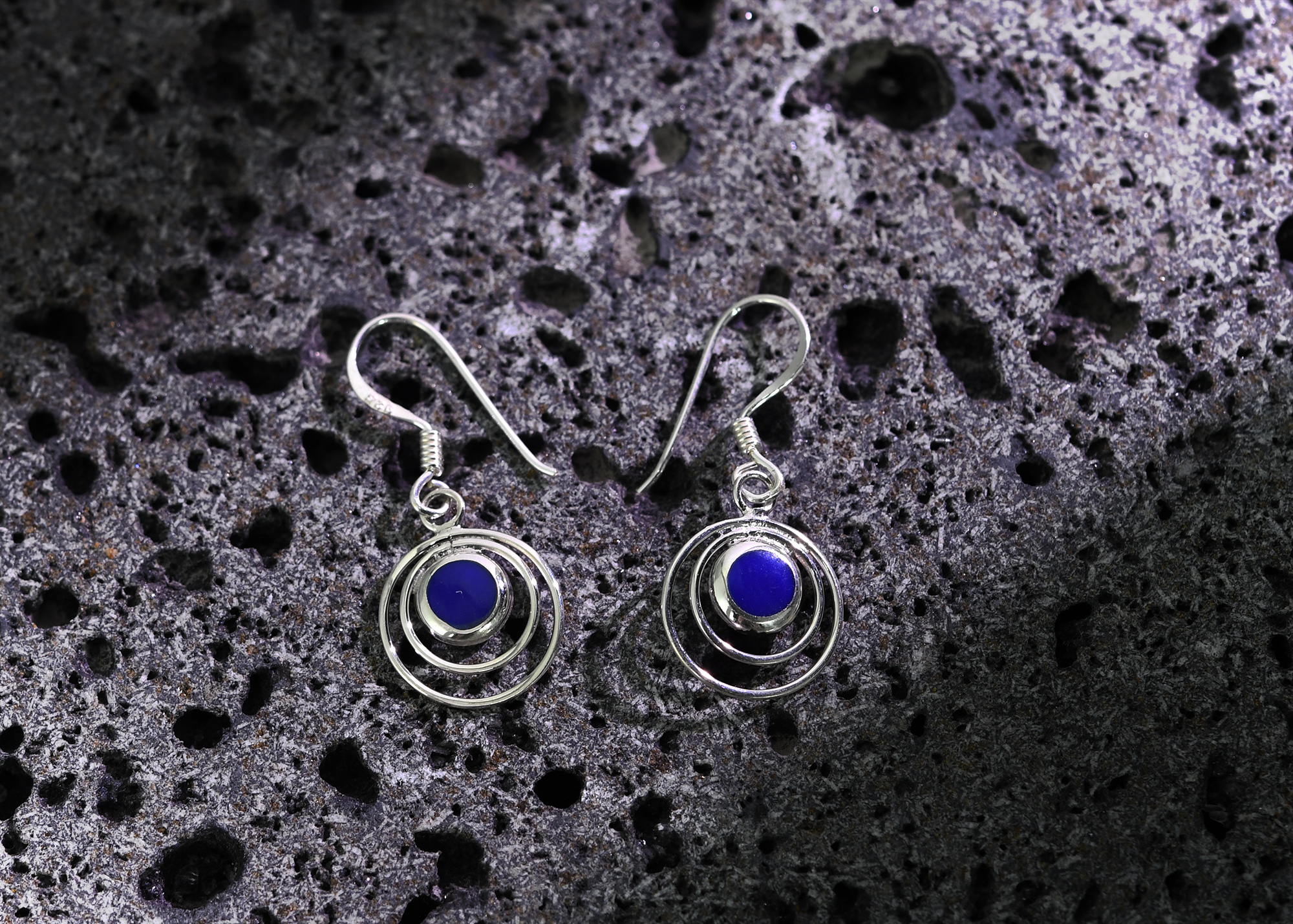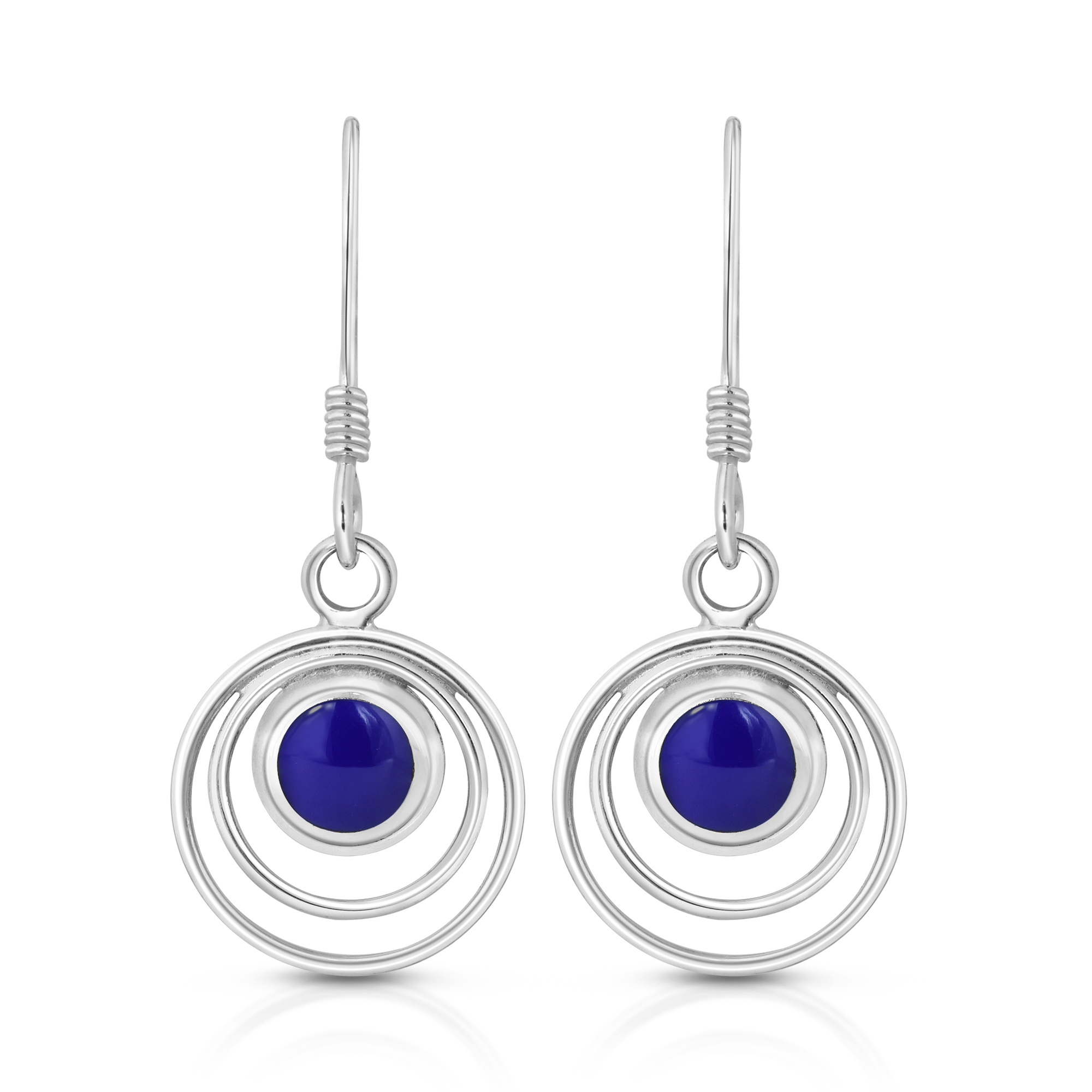 This beautiful pair of earrings features three elegant sterling silver rings that that are then accented with a natural stone or shell inlay. From the workshop of Thai artisan Goong, who crafts these earrings by hand. Her unique pieces are known for combining fine sterling silver with vibrantly colorful accents, which always make for beautiful fashion accessories. These gorgeous dangle earrings are perfect for any occasion, which will make them a versatile addition to your stye line-up.