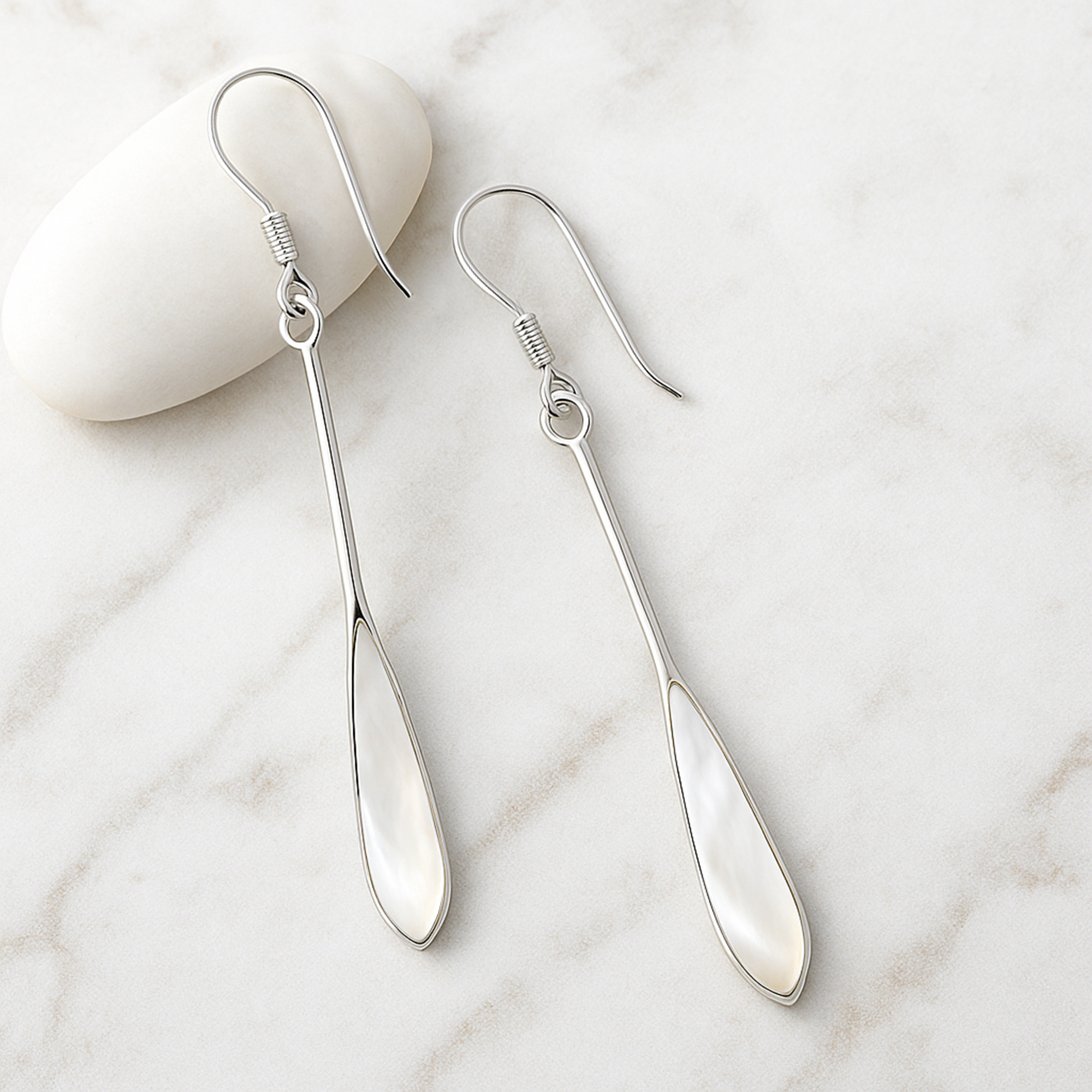 Give off a stunning and classic vibe on any outfit with these sophisticated and slender earrings. From the workshop of artisan Goong of Thailand, these dangle earrings feature stone or shell inlays crafted from fine sterling silver. All of the pieces come together to form one elegant fashion accessory. Dress them up or dress them down, either way, these timeless earrings will look amazing with whatever you are wearing.