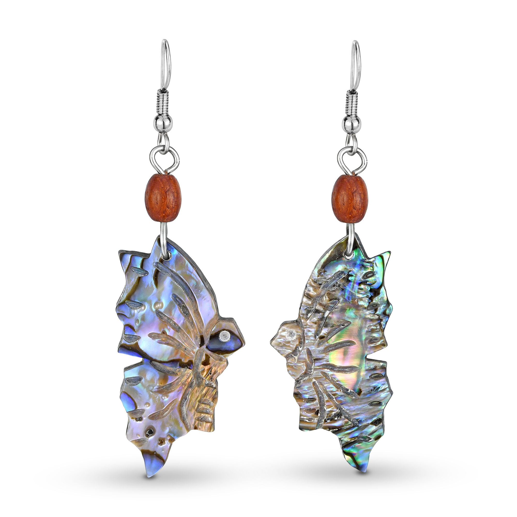 Artisan Tik from Thailand has always been inspired by the beauty found in nature, so for this design, she transforms beautiful seashells into a pair of elegant butterfly earrings. Intricately detailed and carved using natural black lip shell, these earrings display a stunning iridescent sheen. A wooden bead adds a natural contrast while eyes made of crystal stones add a touch of sparkle. A great fashion accessory for any occasion, these versatile dangle earrings will make a great addition to your style repertoire.