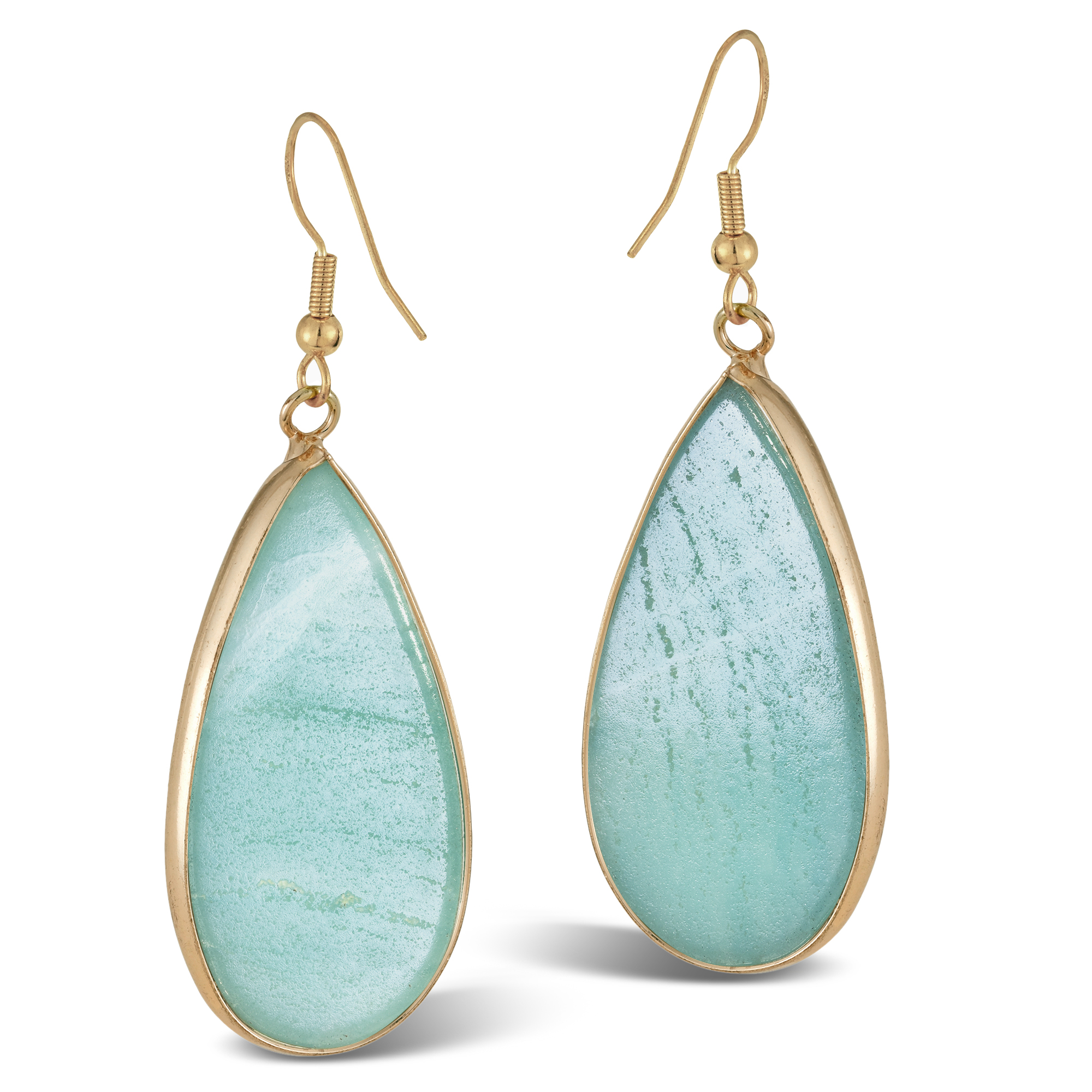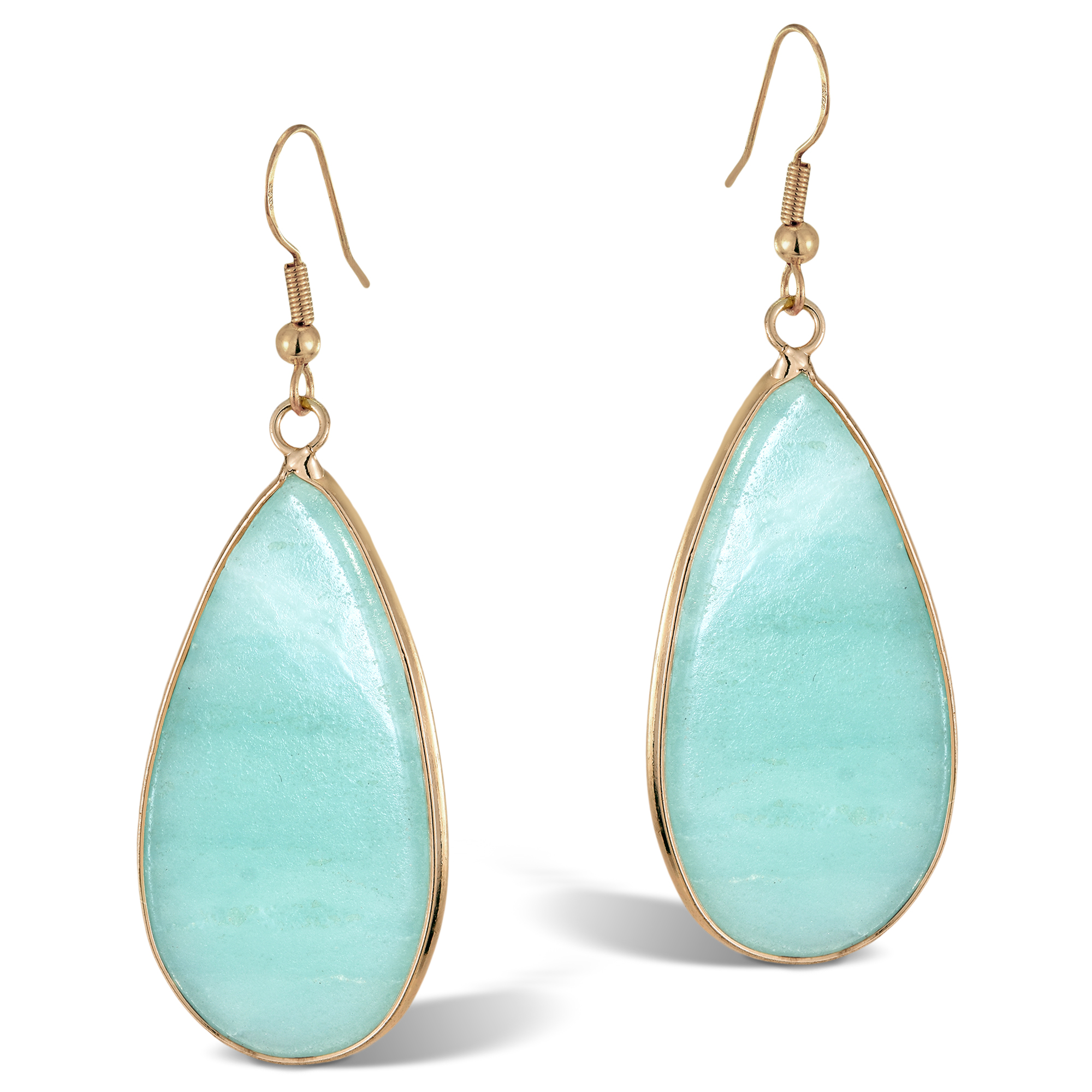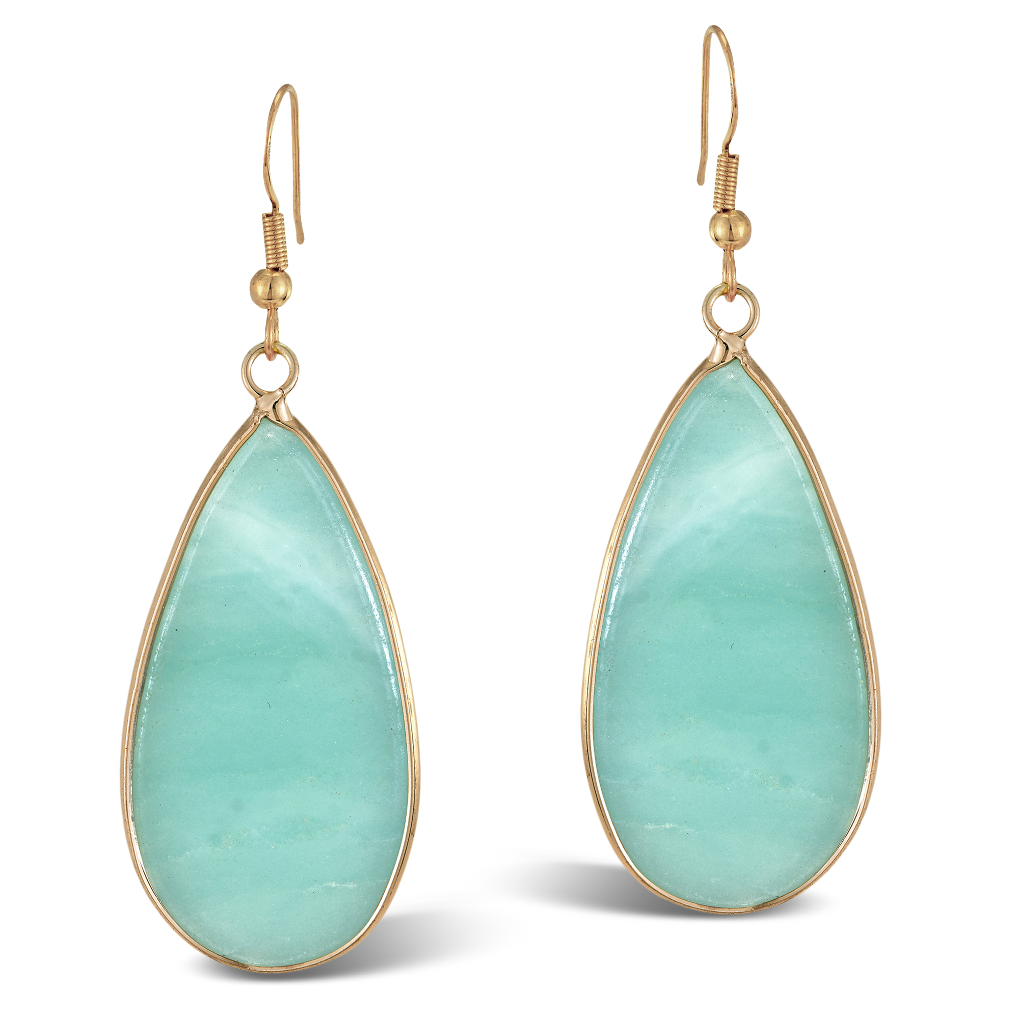 Make a Bohemian or Coachella-inspired fashion statement with these gorgeous earrings from artisan Piya of Thailand. For this design, she sets light green amazonite stones on bases of gold-plated sterling silver. These dangle earrings are shaped into elegant noticeable teardrops, which is a timeless design that will always be in fashion. All swinging from gold-plated sterling silver jewelry hooks, these unique and chic earrings will make the perfect addition to your style wardrobe.