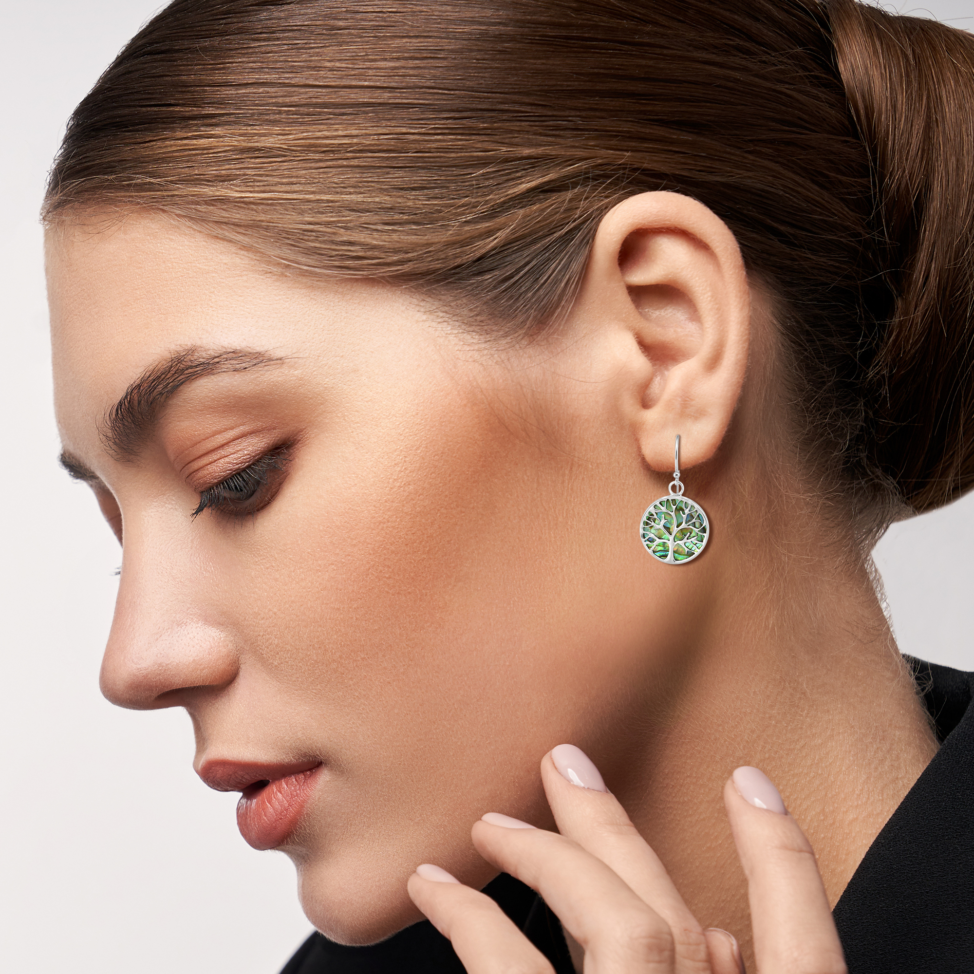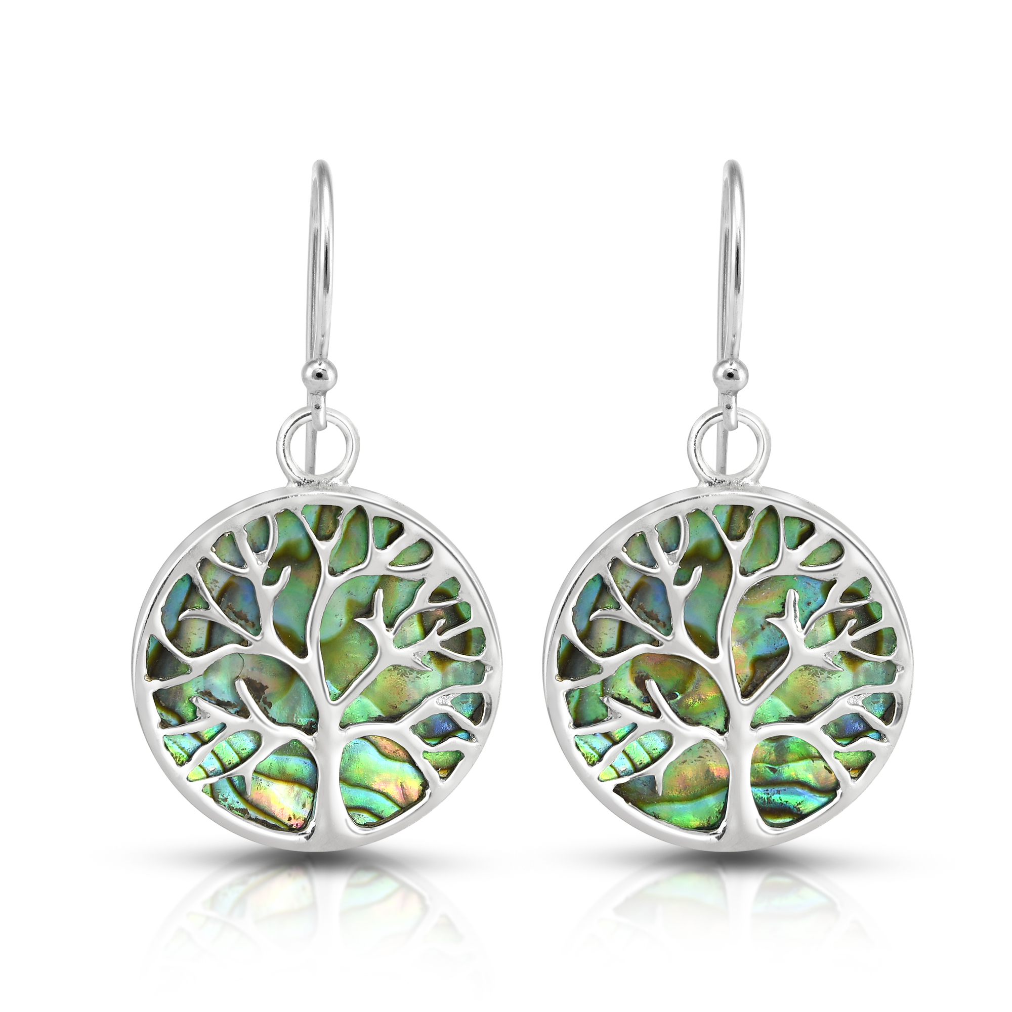 Add a beautiful touch of elegance to any outfit with these amazing earrings from Thai artisan Goong. For this design, sterling silver is transformed into a pair of round dangle earrings featuring the majestic tree of life. Stylish stone or shell inlays add a vibrant splash of color to this trendy fashion accessory. The Tree of Life, with its outward reaching branches, is said to symbolize the interconnection between all life and the flow of creation. Both powerful and meaningful, these elegantly handcrafted earrings are sure to look great with whatever you are wearing.