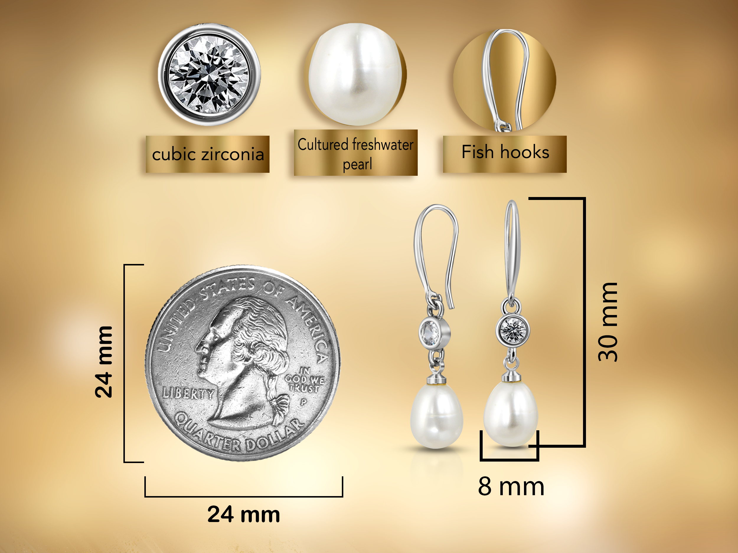 | Stone: | Cultured freshwater pearl, cubic zirconia |