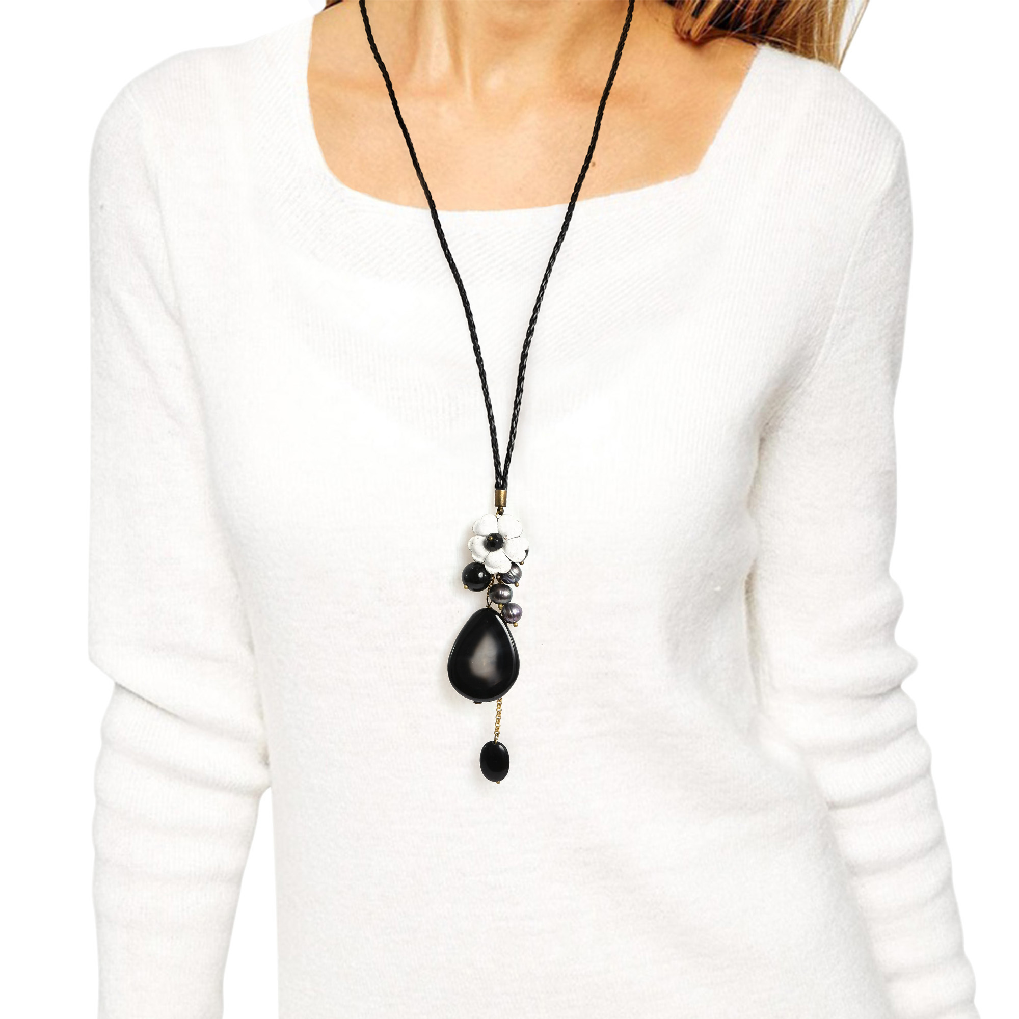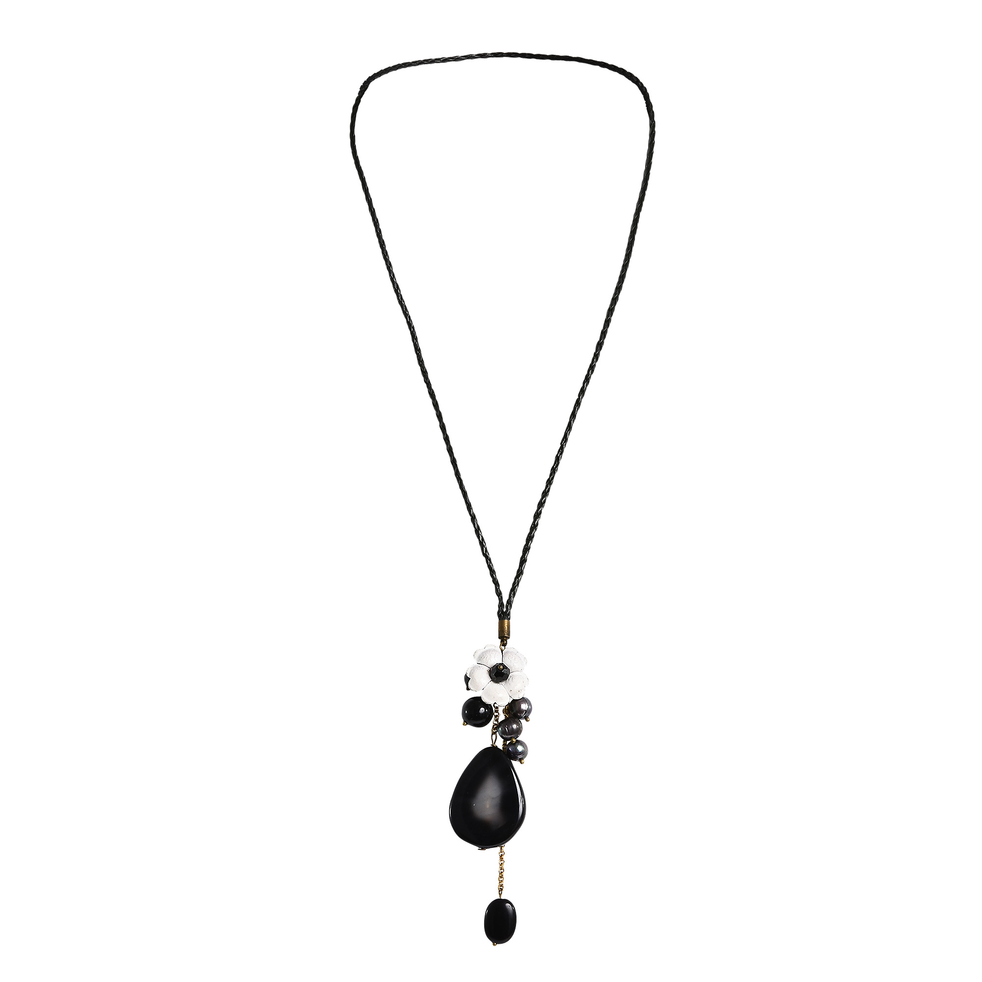 The creative mind of Thai designer Tor is on display with this beautiful stone and coral necklace. The pendant features an elegant lone flower which is embellished with stone and coral accents. A duo of beautifully cut and polished stone then dangle below to add drama and interest to the pendant. The length of the necklace measures 28 inches and easily fits over your head. The chord is made from brass and leatherette. A truly unique and stylish necklace that is sure to be the focal point of any outfit