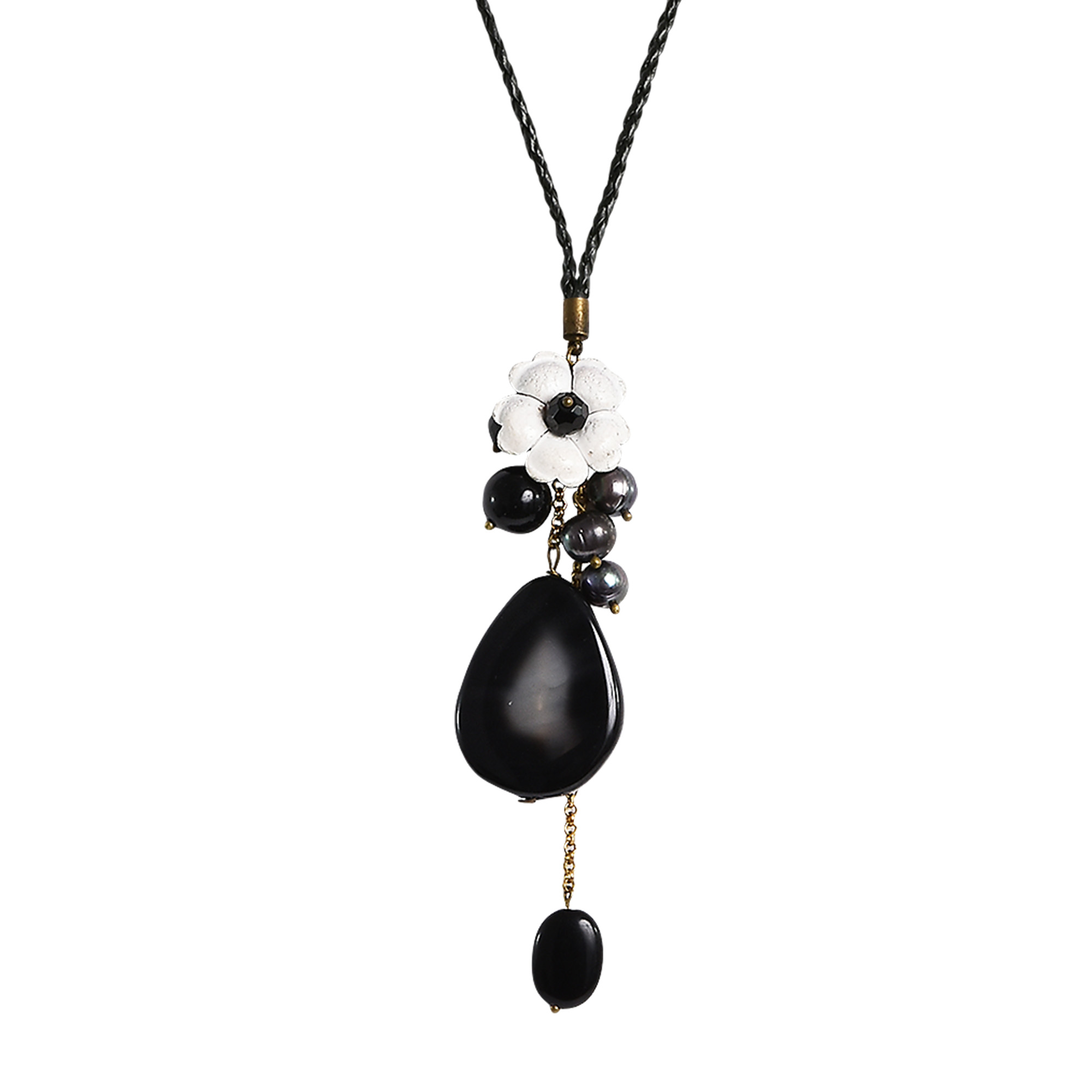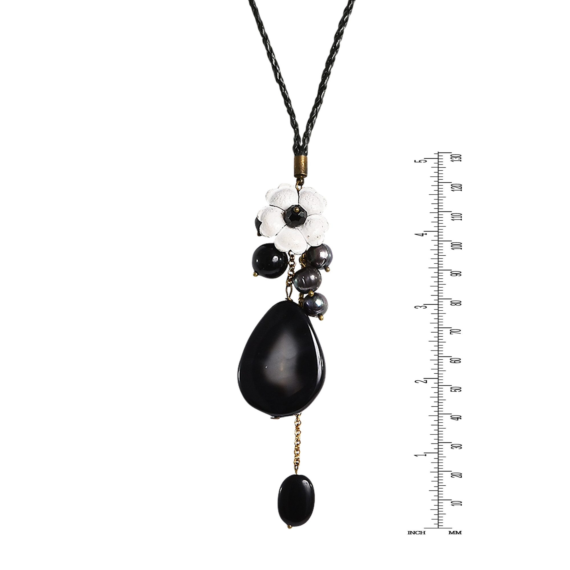 | Stone: | Reconstructed onyx, reconstructed agate, black cultured freshwater pearl |