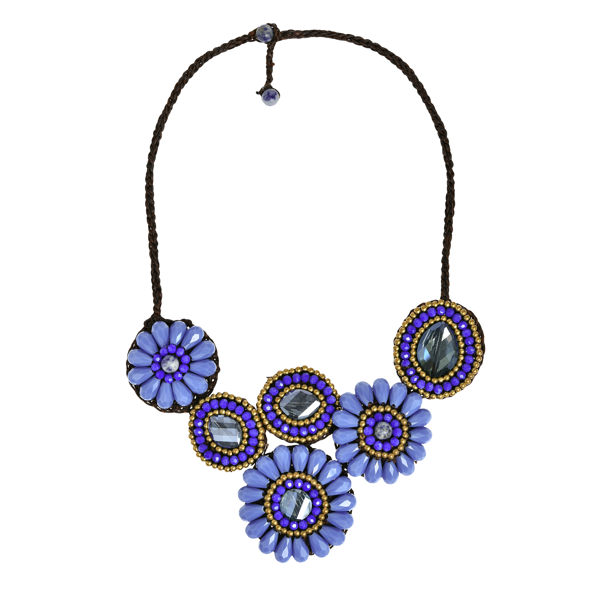 | Materials: | Cotton wax rope, crystal, brass beads |