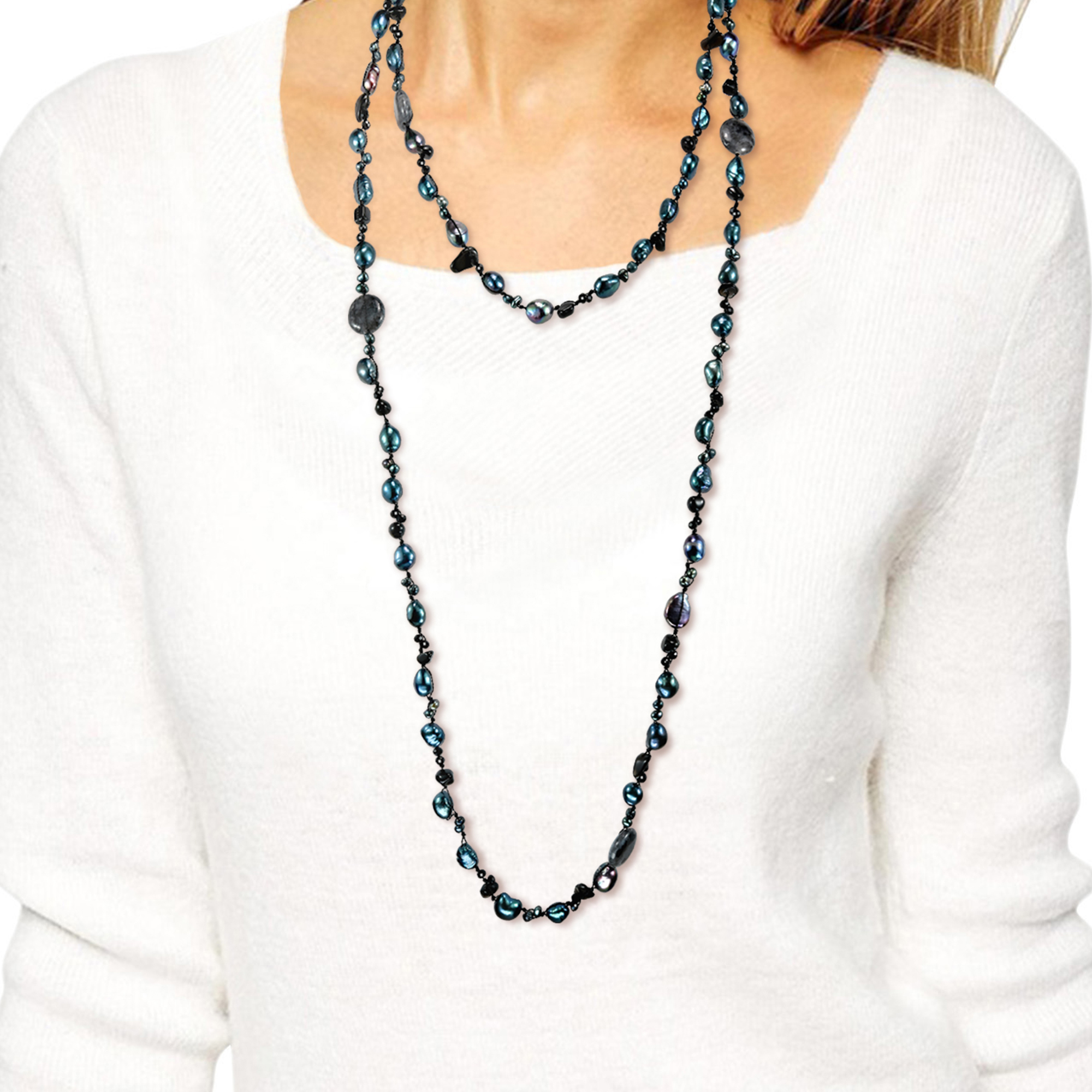 Add a bold splash of style to any outfit with this amazing necklace from Thai artisan Lai. Her design features an extra long necklace that is studded with a beautiful mix of stones and pearls. This versatile piece can be worn in a multitude of wrap around styles which will increase the wear ability. (This piece comes in a variety of colors and materials to choose from). A perfect way to add a vibrant and colorful accent to your outfit of the day, this necklace will not disappoint.