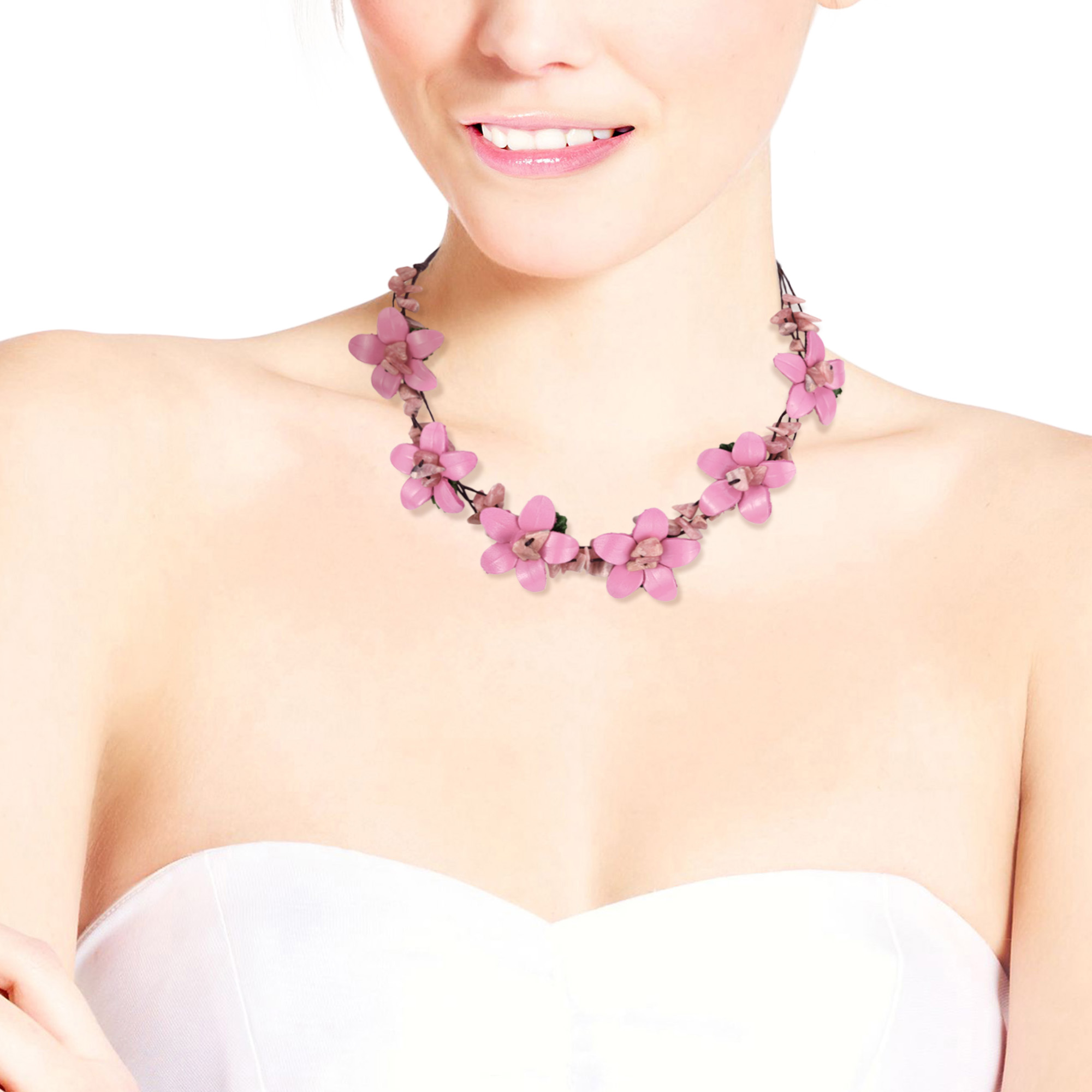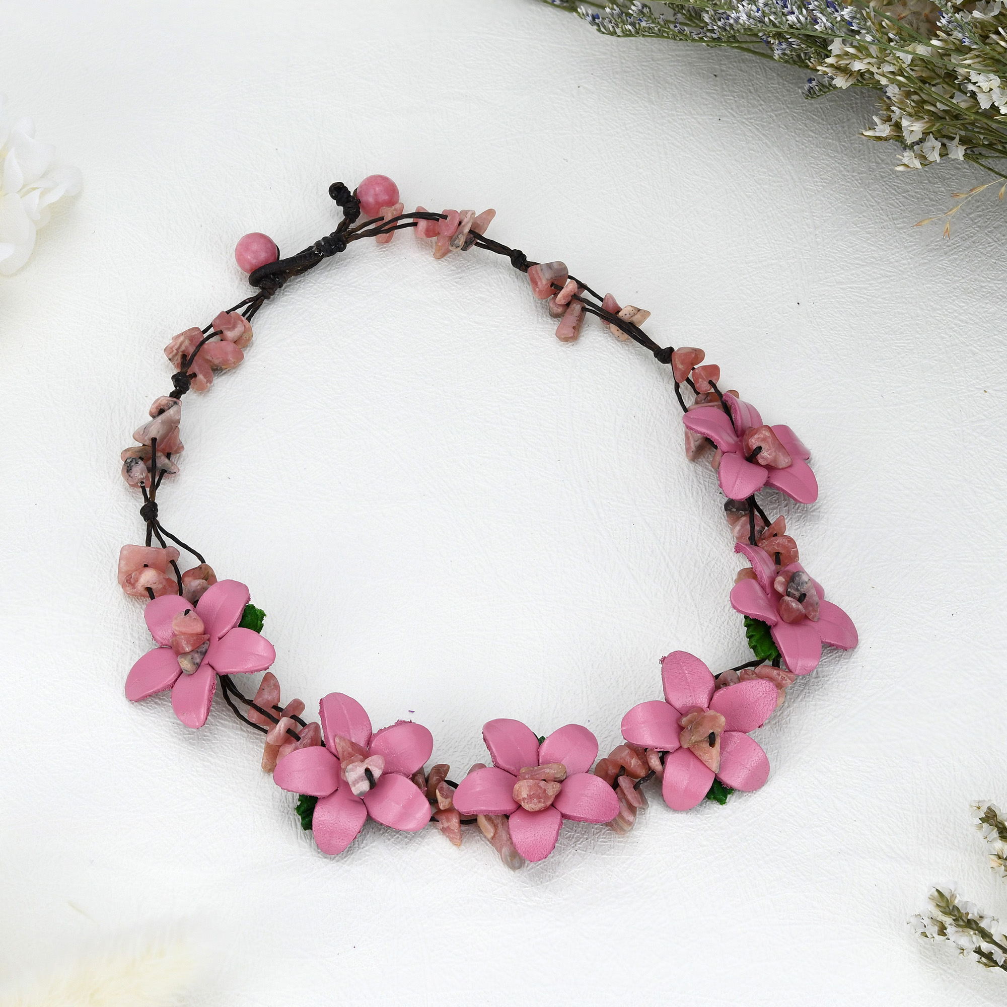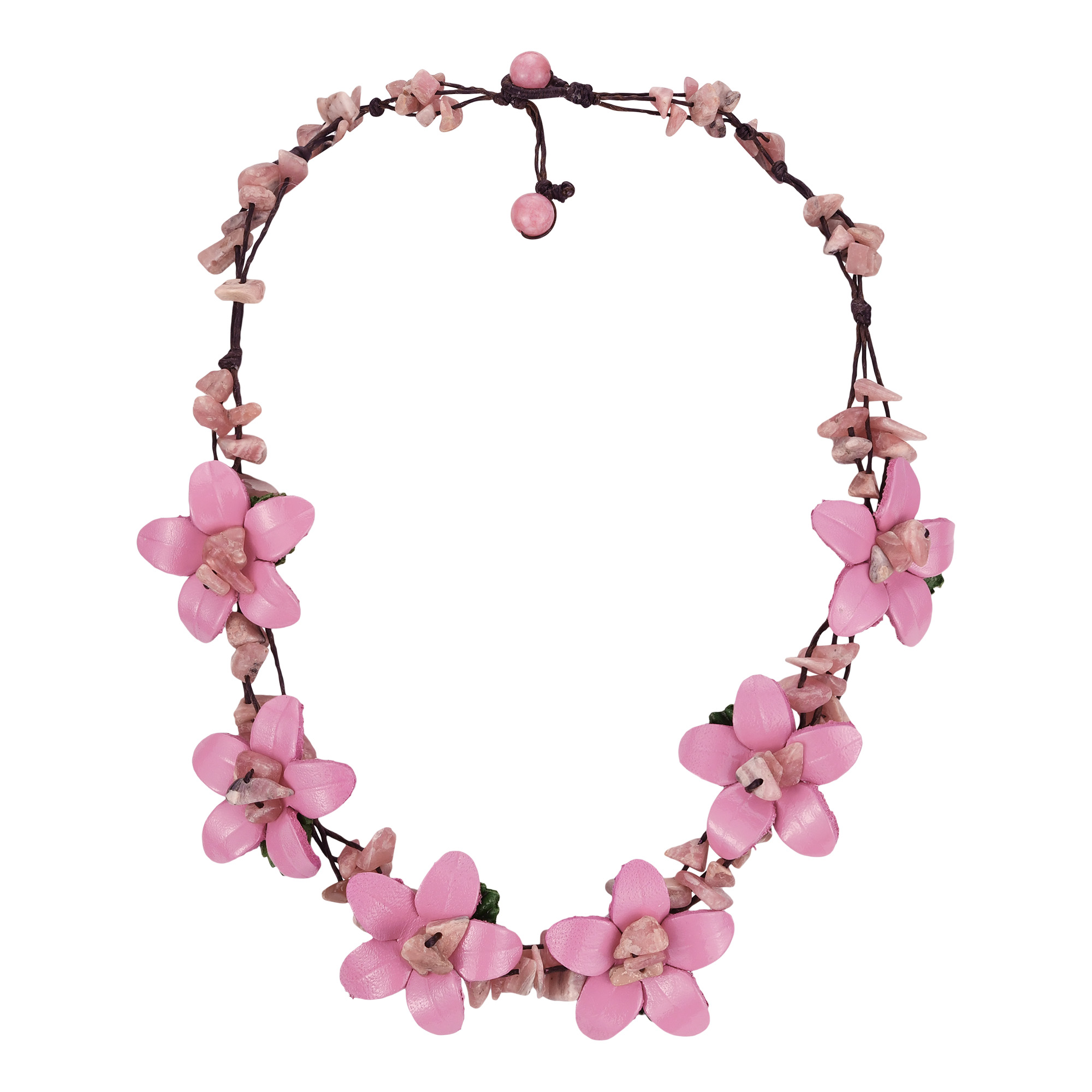 Add a beautiful floral accent to any outfit with this gorgeous choker necklace from artisan Chayo of Thailand. Inspired by the tropical flowers that grow near his home, this creation features a string of pretty flowers made from genuine leather, which are then strung on cotton rope. Rough cut stones are added, giving this necklace a tropical chic vibe inspired by nature. A beautiful mix of color and versatility, this hand-crafted necklace will look absolutely amazing with whatever you are wearing.
