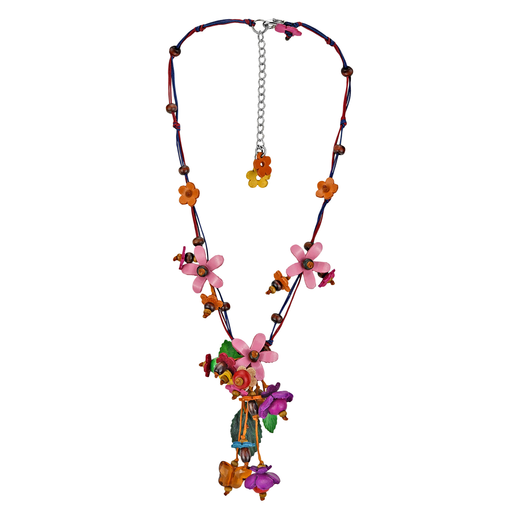 Add a beautiful bouquet of style to your outfit of the day with this amazing necklace from Thai artisan Chayo. Inspired by the beautiful tropical flowers which grow everywhere in tropical Thailand, this handcrafted necklace features elegant flowers made of genuine leather. Wood and glass accents add both color and texture to this stunning statement necklace. All set on a braided leather band that is finished off with an adjustable lobster claw clasp, this stunning necklace will add a splash of vibrant color to any outfit.