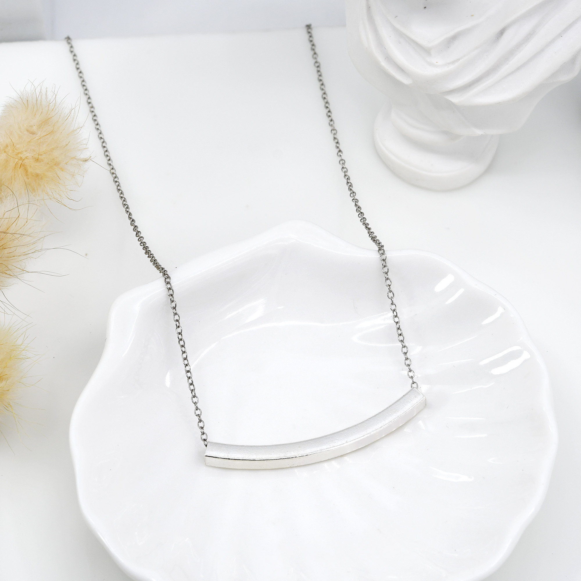 Both charming and simple, this stylish necklace is sure to look amazing with just about anything. Presented by artisan Andy from Thailand, this piece features an edgy curved bar made from fine sterling silver. Then linked to a sterling silver cable chain that measures 18 inches long finished with a spring ring clasp. A versatile and elegant necklace that you can wear anywhere, this on-trend necklace will make a brilliant addition to any outfit. NOTE: Due to the handcrafted nature of this product, minor differences in design, sizing, and weight will occur from piece to piece. The exact measurements may vary slightly. Pictures may not be true to scale, please check the dimensions for the actual size.