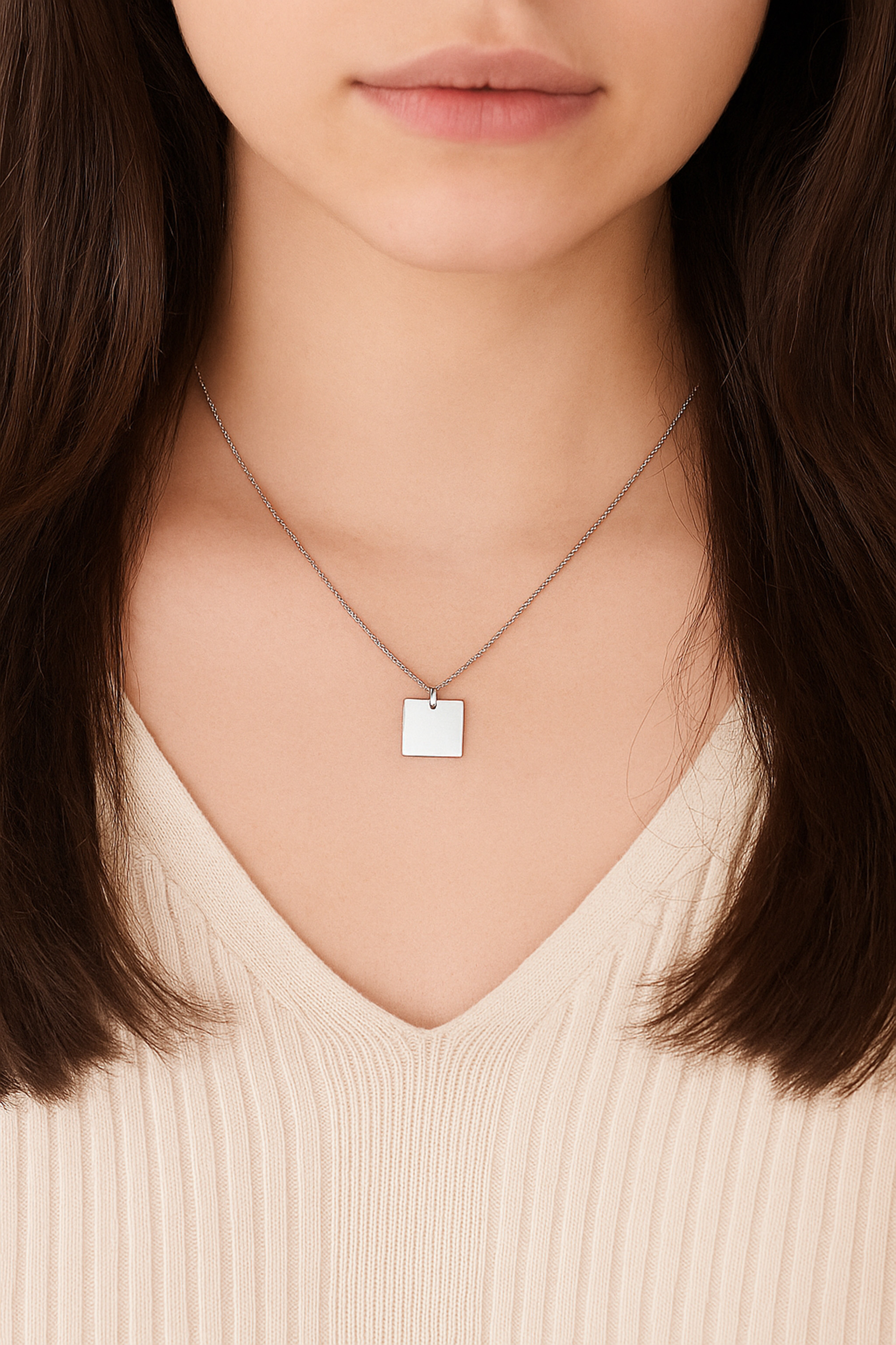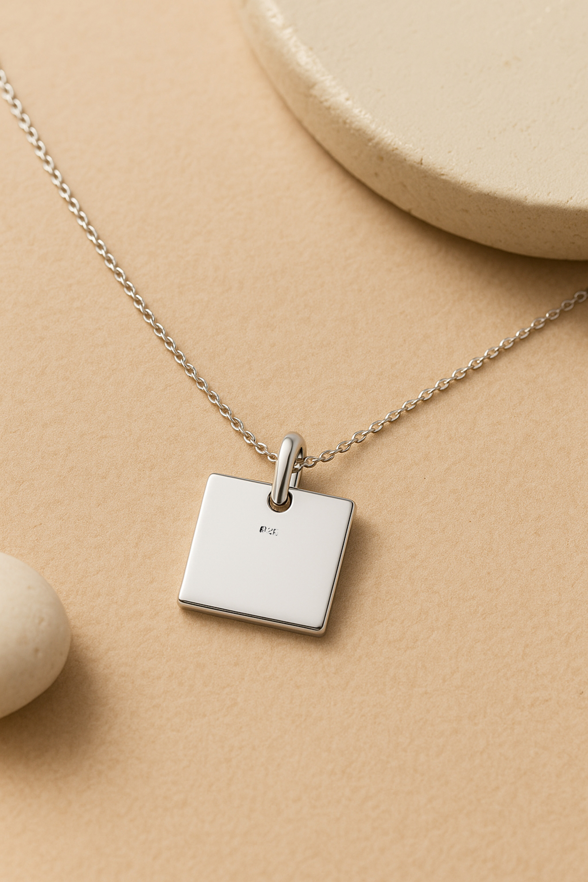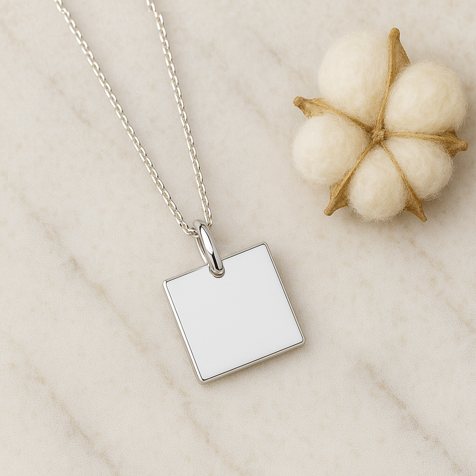 This classic sterling silver necklace was handcrafted by Artisan Kung from Thailand. The design features an 18-inch long chain with plain square shaped pendant. An simple yet elegant design that will compliment any outfit.
