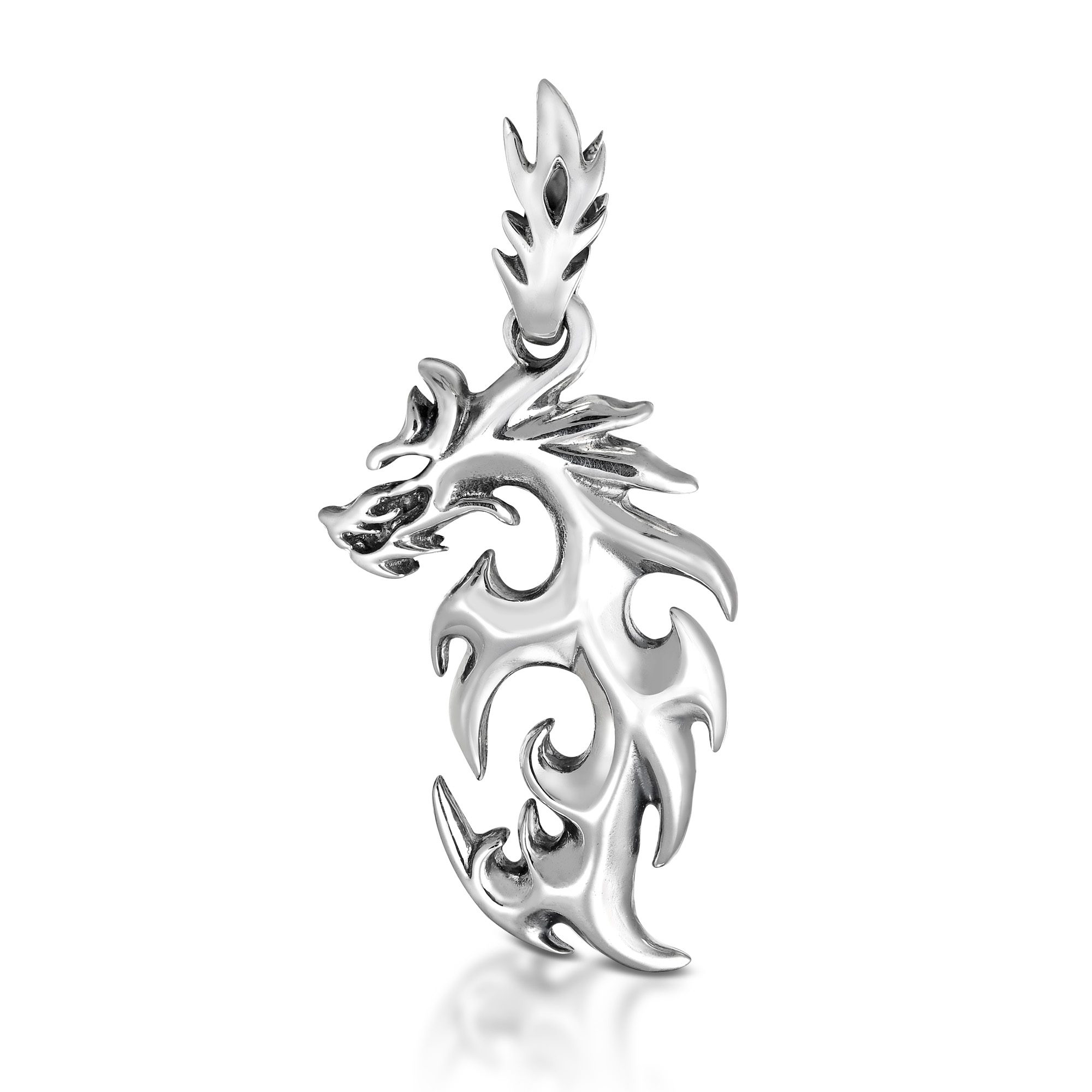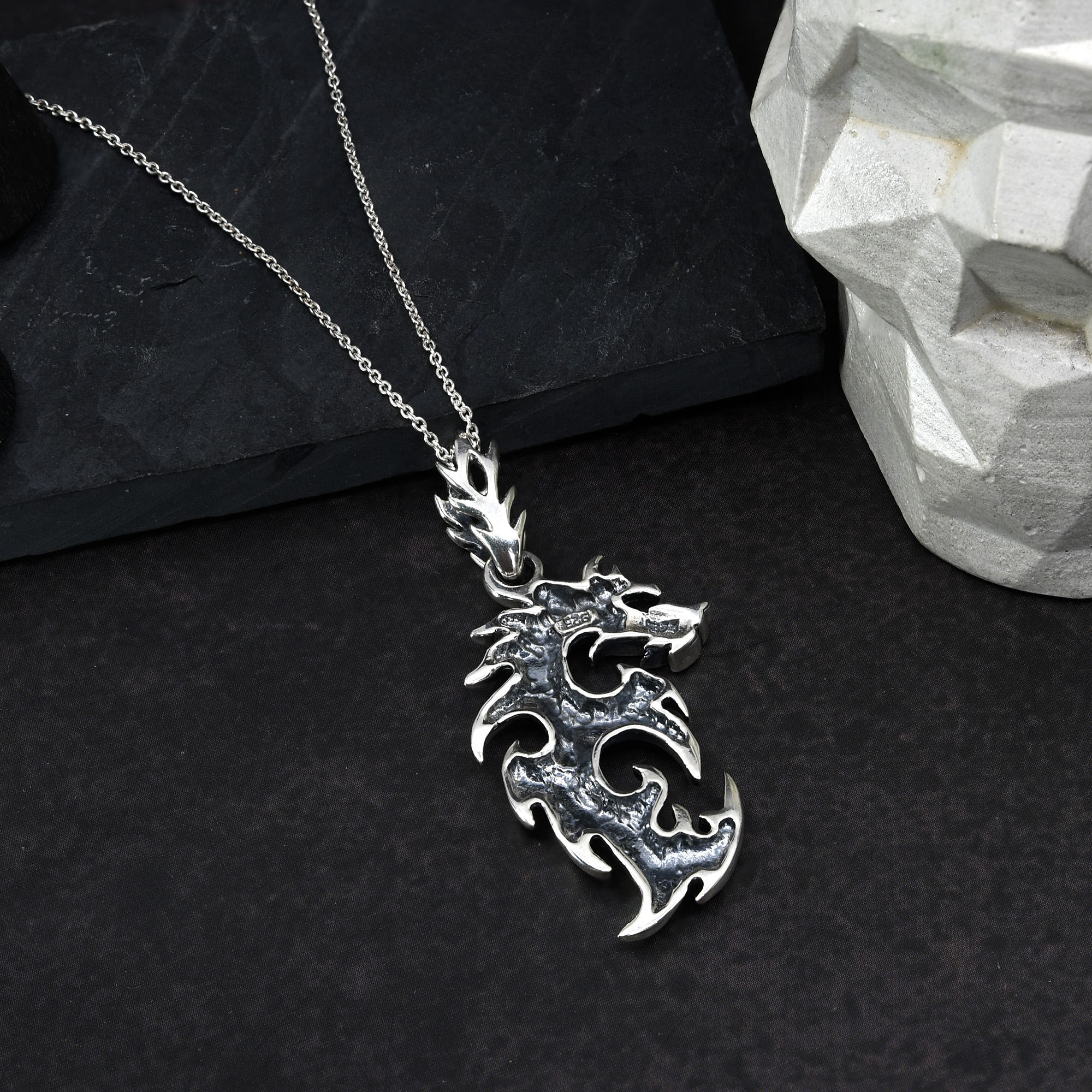Add a beautifully crafted dragon accent to any outfit with this amazing necklace from Thai silver artisans Andy and Kathy. For this piece, fine sterling silver is transformed into a fiery Asian dragon pendant. The jagged edges give off a trendy tribal vibe that is on fire. All set on a sterling silver cable chain necklace, this unique and chic fashion accessory is a definite must-have for you style wardrobe.