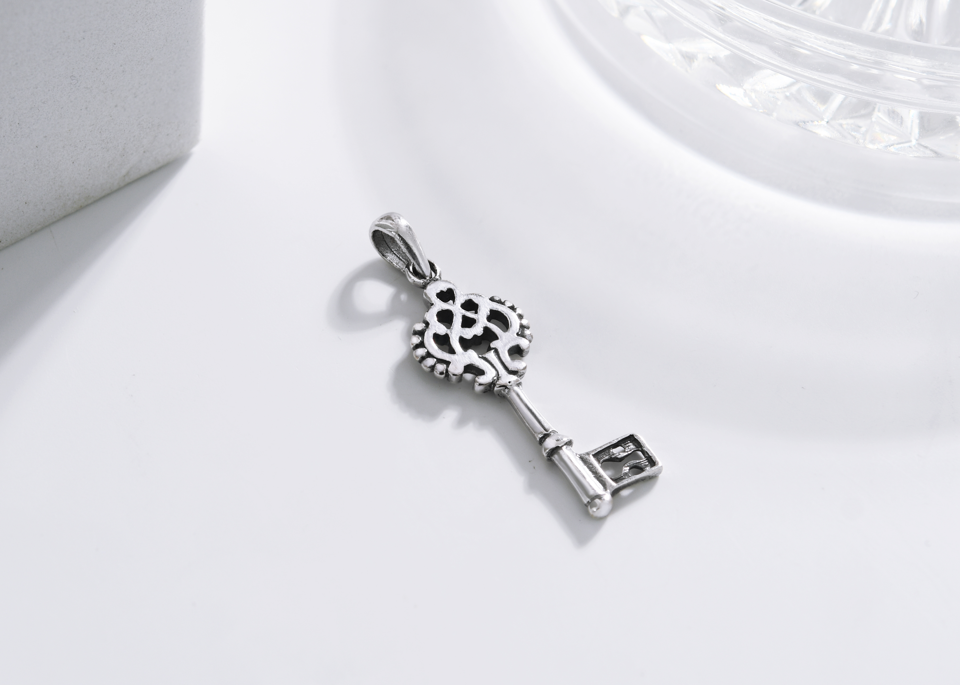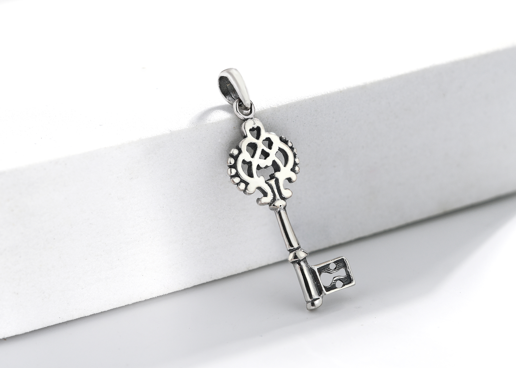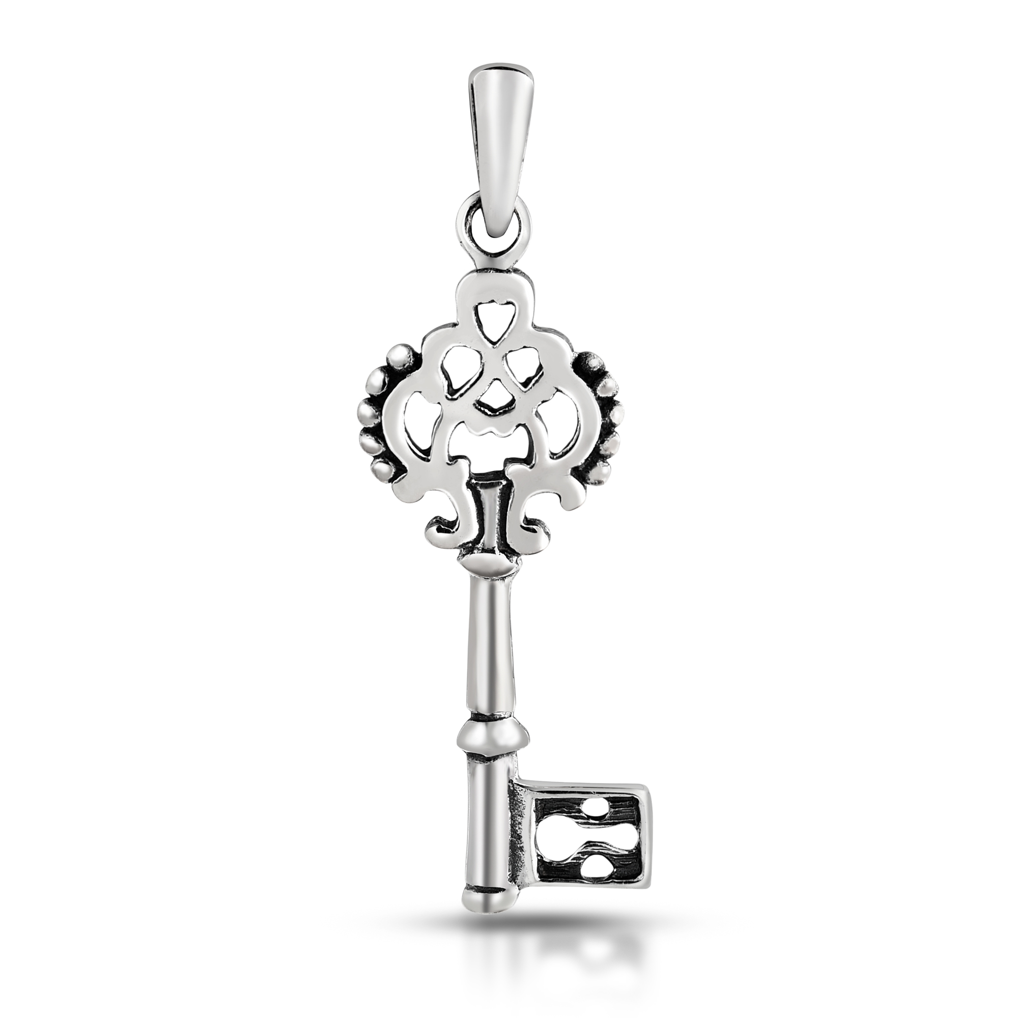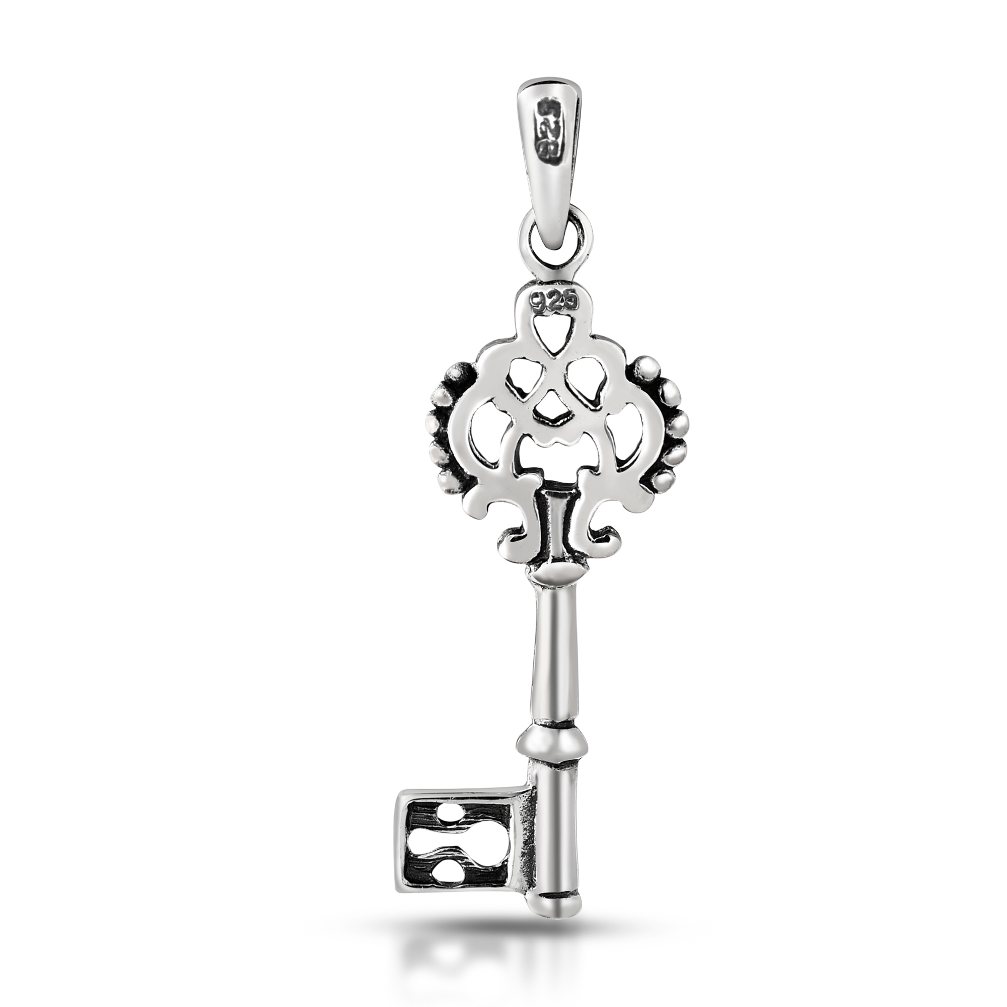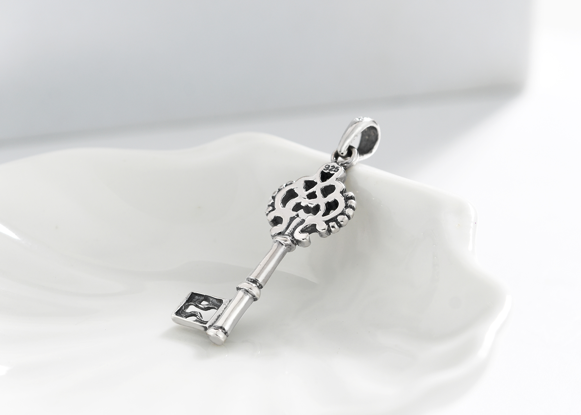 Give her the key to your heart with this unique sterling silver pendant handcrafted by artisan Khun Jai from Thailand. The pendant features a finely detailed key that has a distinctive regal feel. This pendant evokes romance and elegance.