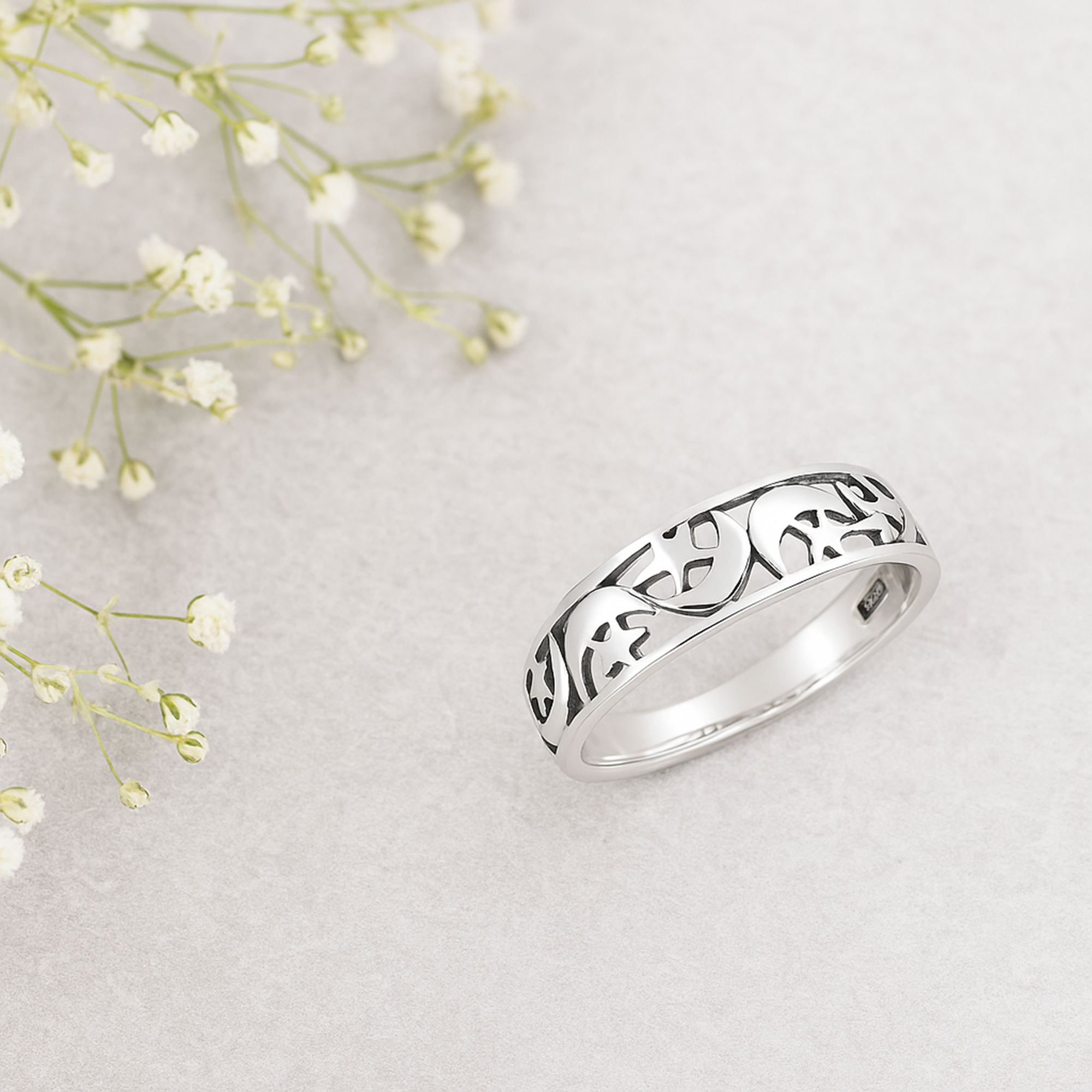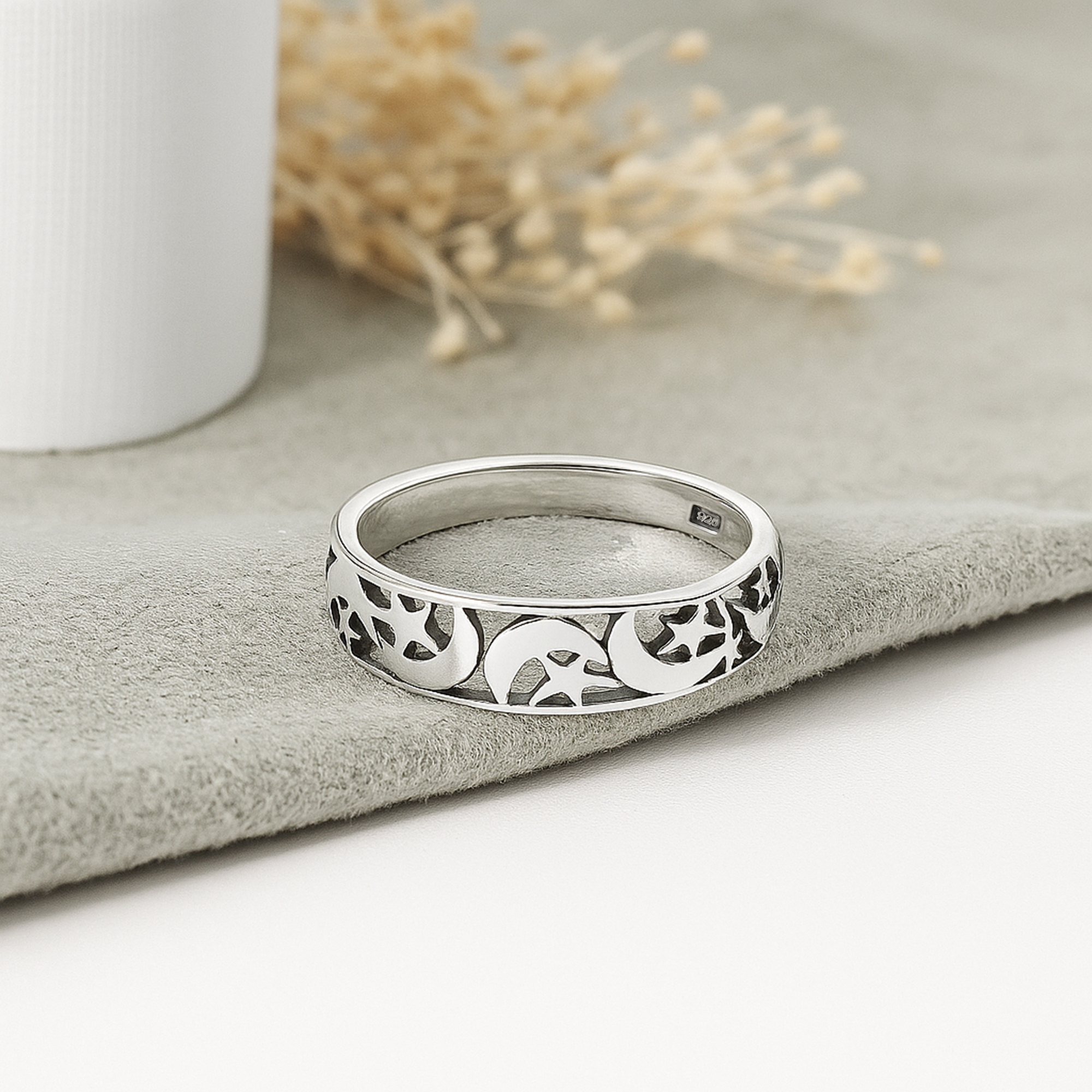 Capture a bit of the heavens wearing this striking Moon and Star Ring. This sterling silver ring is the perfect accompaniment to any style.
