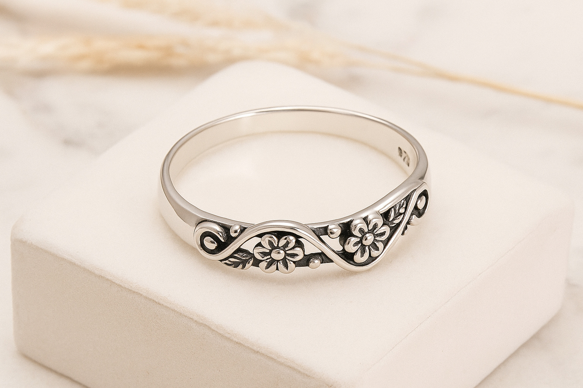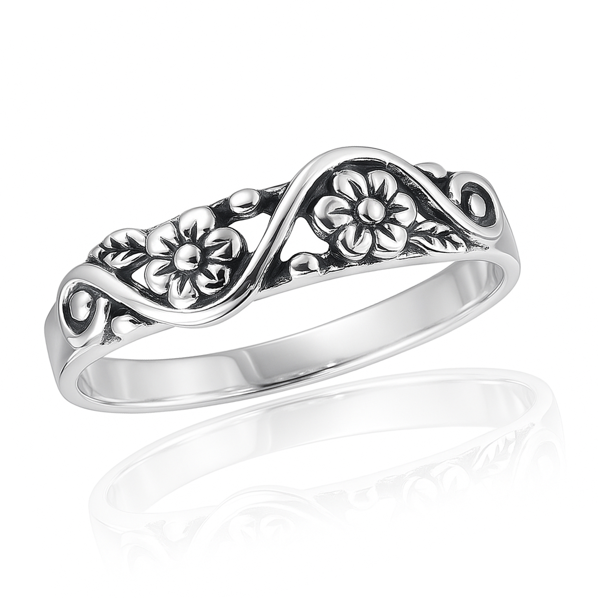 Handcrafted by artisan Kung from Thailand, this charming sterling silver ring will make a wonderful addition to your wardrobe. The design features an floral vine wreath as the centerpiece. Lightweight and versatile, this ring can be worn everyday.