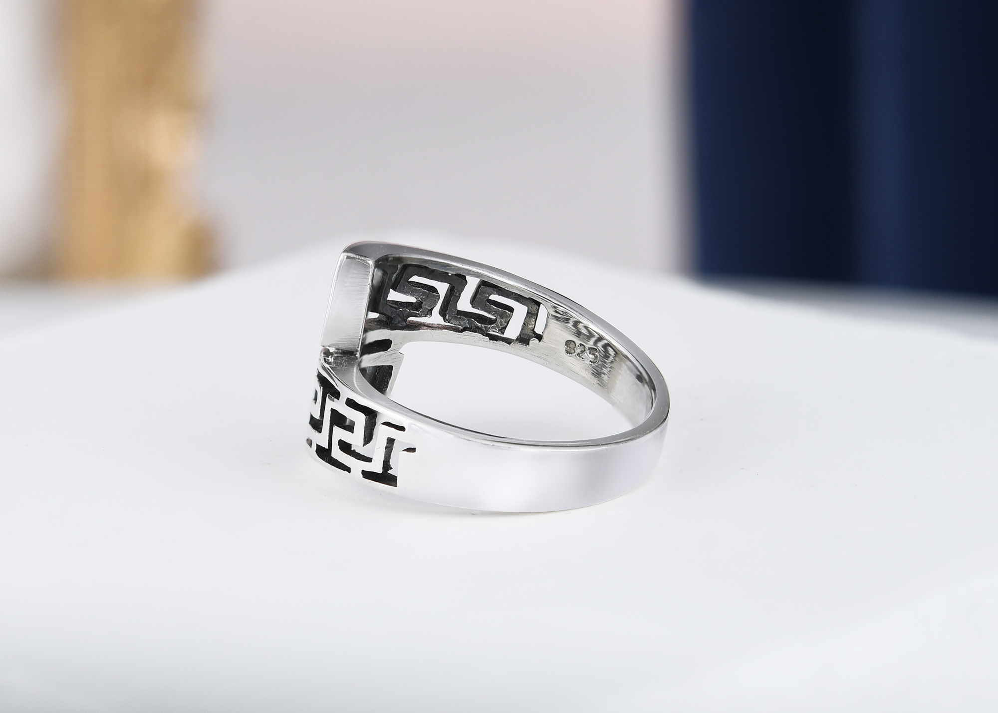 A lovely greek key motif fashion this design from Thailand. Crafted in sterling silver, this ring adds a unique essence to your style.