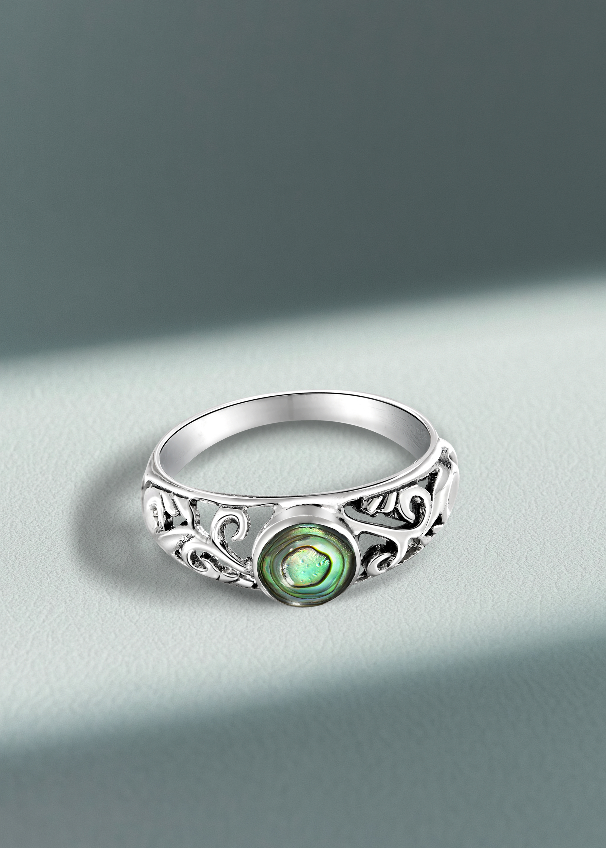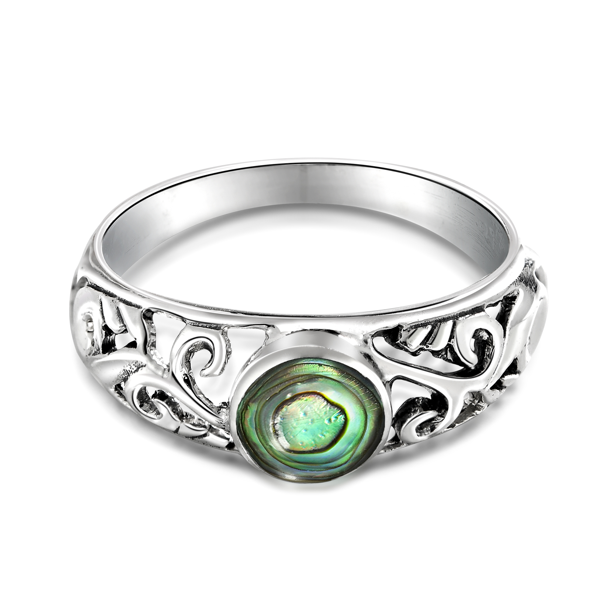 A vivid sphere of natural gemstone sits at the center of delicate sterling silver lacework which adorns this polished silver band ring. Crafted in Thailand by Goong, the ring is made from sterling silver .925 and features oxidized contrasts for added depth and detail. This classic accessory is an absolute must for any jewelry collection and can be worn everyday for both casual and semi-formal occasions.