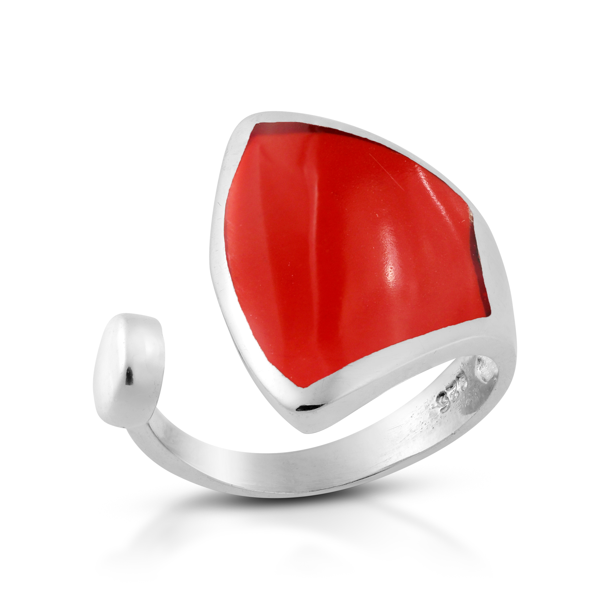 Add a modern touch of elegance to whatever you are wearing with this stunning ring from artisan Goong from Thailand. For this design, she crafts a unique and modern ring using fine sterling silver and then accents it with a colorful stone or shell inlay. An adjustable open-ended design allows for a great fit. This versatile ring is a great way to add both style and color to any outfit and it will make a wonderful addition to any jewelry collection.