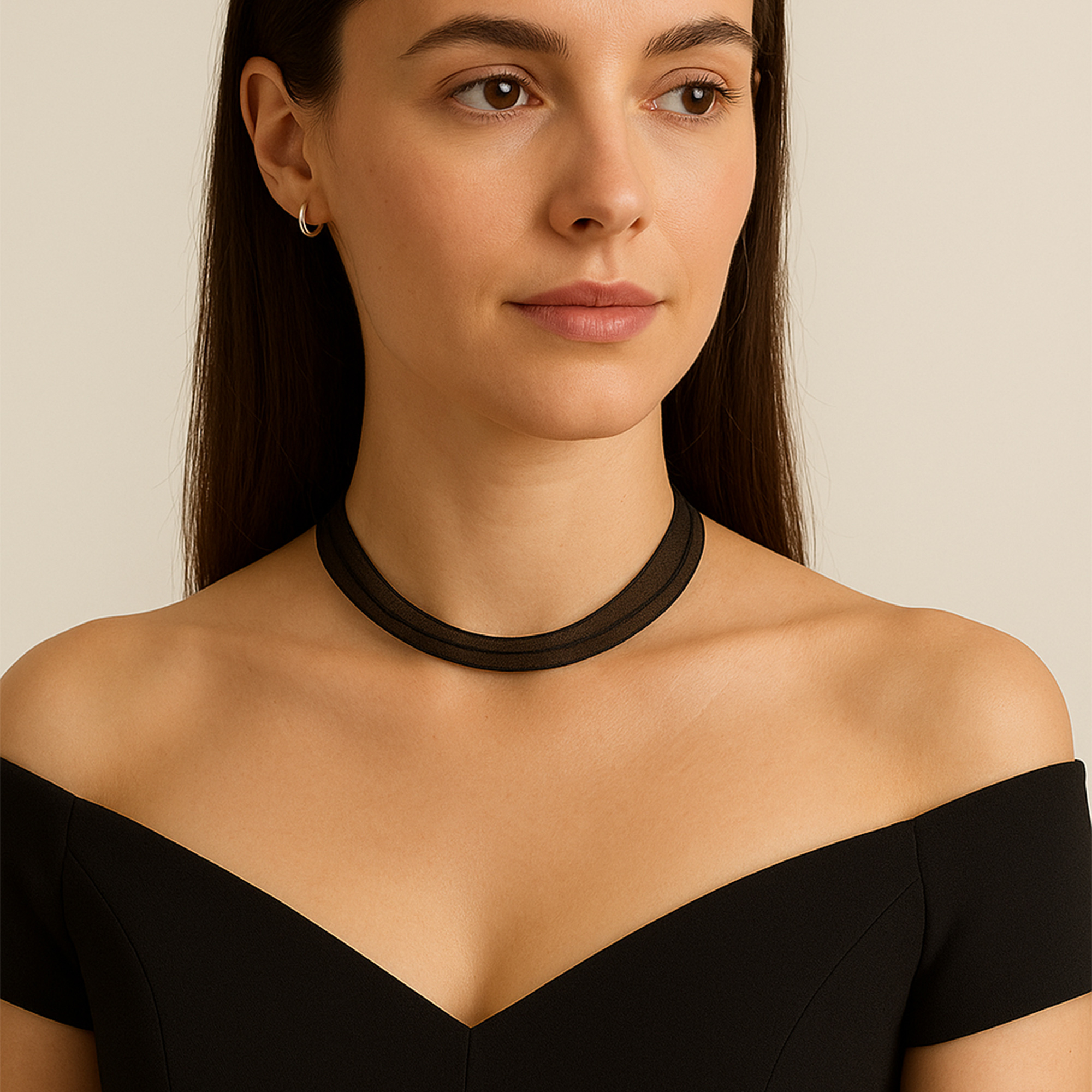 This beautiful and chic necklace features a stylish choker design and features a double layer of sheer ribbon with a matching silk chord. A very chic form, this piece will add a colorful touch of elegance to any outfit. This piece comes in a variety of colors to choose from. Measuring in with a length of 16 inches, with an additional 1 inch extension, this necklace is then finished off with a sterling silver lobster claw clasp. This amazing necklace is perfect for any occasion and will look great with whatever you pair it with.